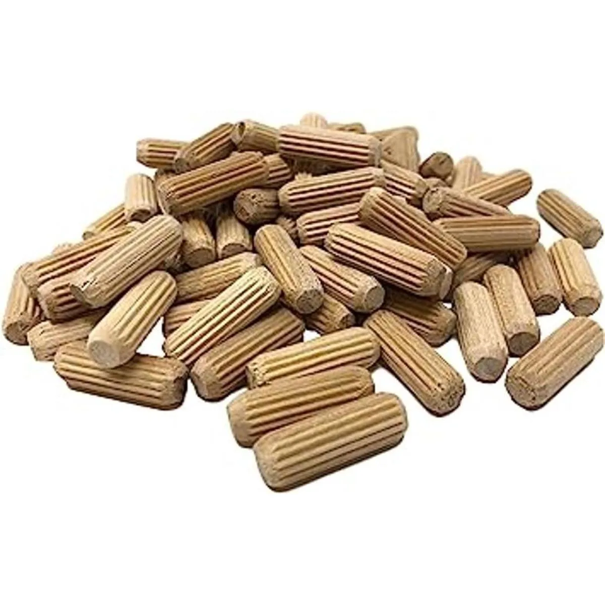 Paquete de 100 pasadores de madera de 38 x 1 14 pulgadas, estriados y biselados, hechos de madera dura.