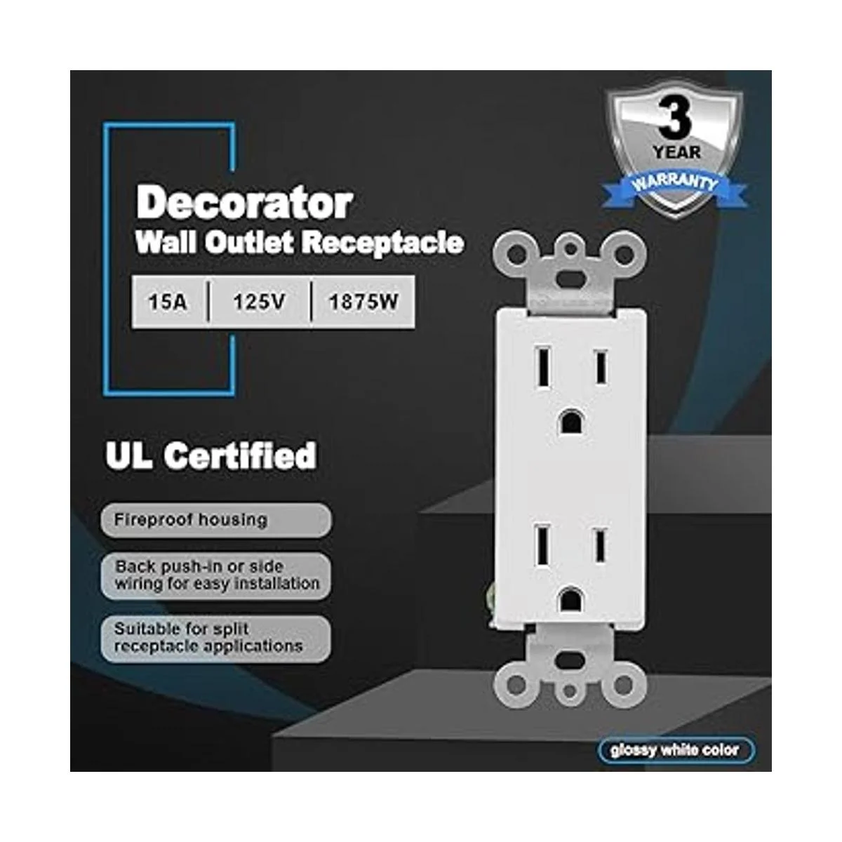 Paquete de 100 receptáculo de pared CML de 15 amperios, toma de corriente estándar, 15 A125 V, 3 años de garantía, certificación UL