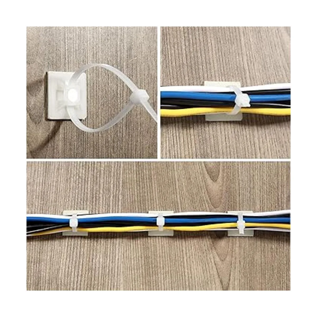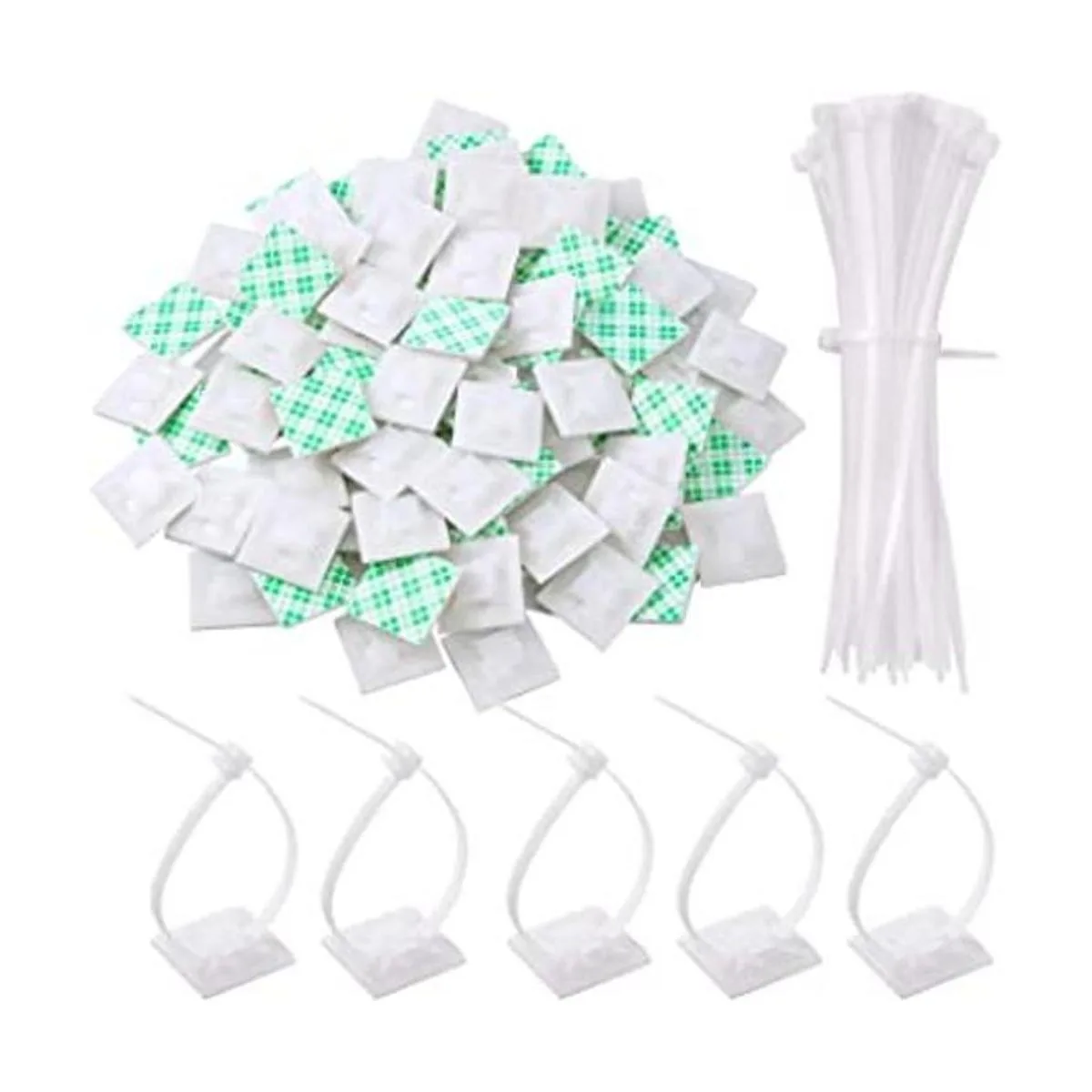 Fácil de usar: soportes autoadhesivos, se instala rápidamente, no requiere tornillos; utiliza el agujero de tornillo integrado para añadir resistencia, 100 bridas a juego proporcionan un uso más flexible