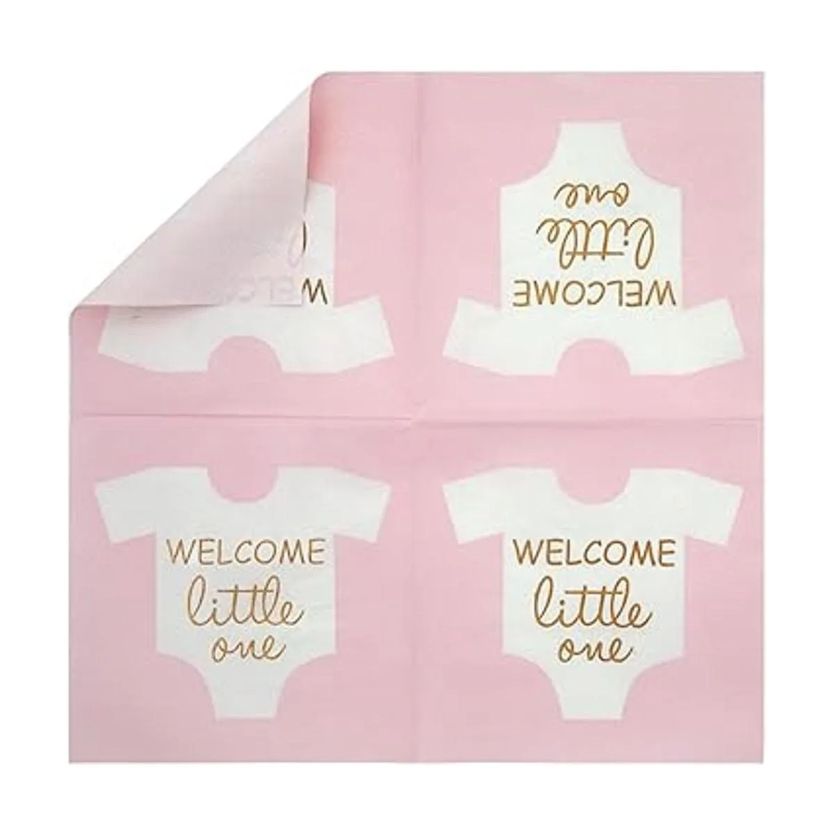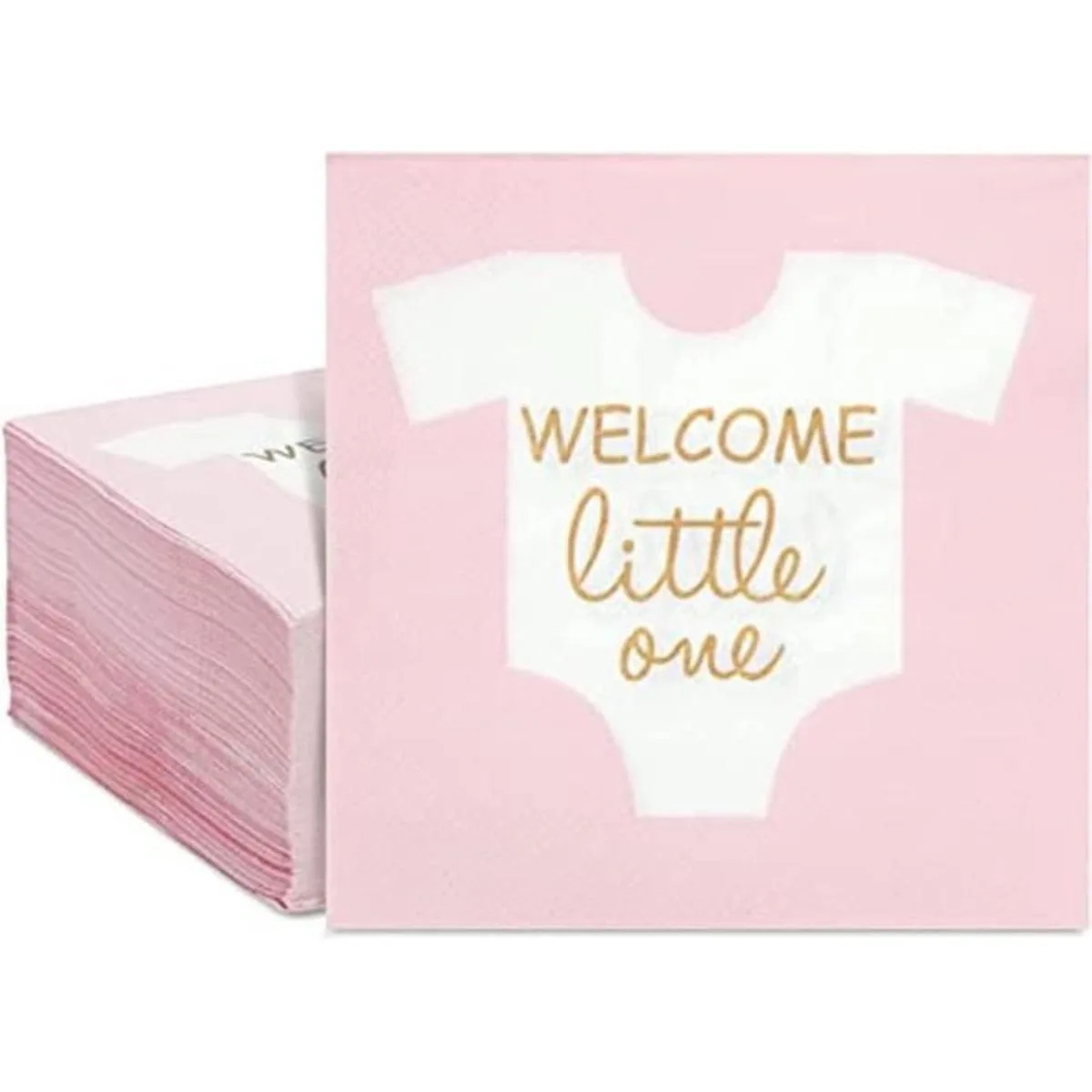 Paquete de 100 suministros para fiesta de baby shower, servilletas de papel 5 x 5 pulgadas, rosa