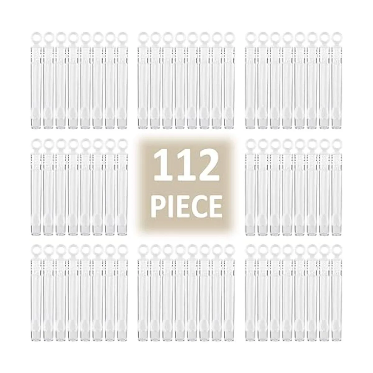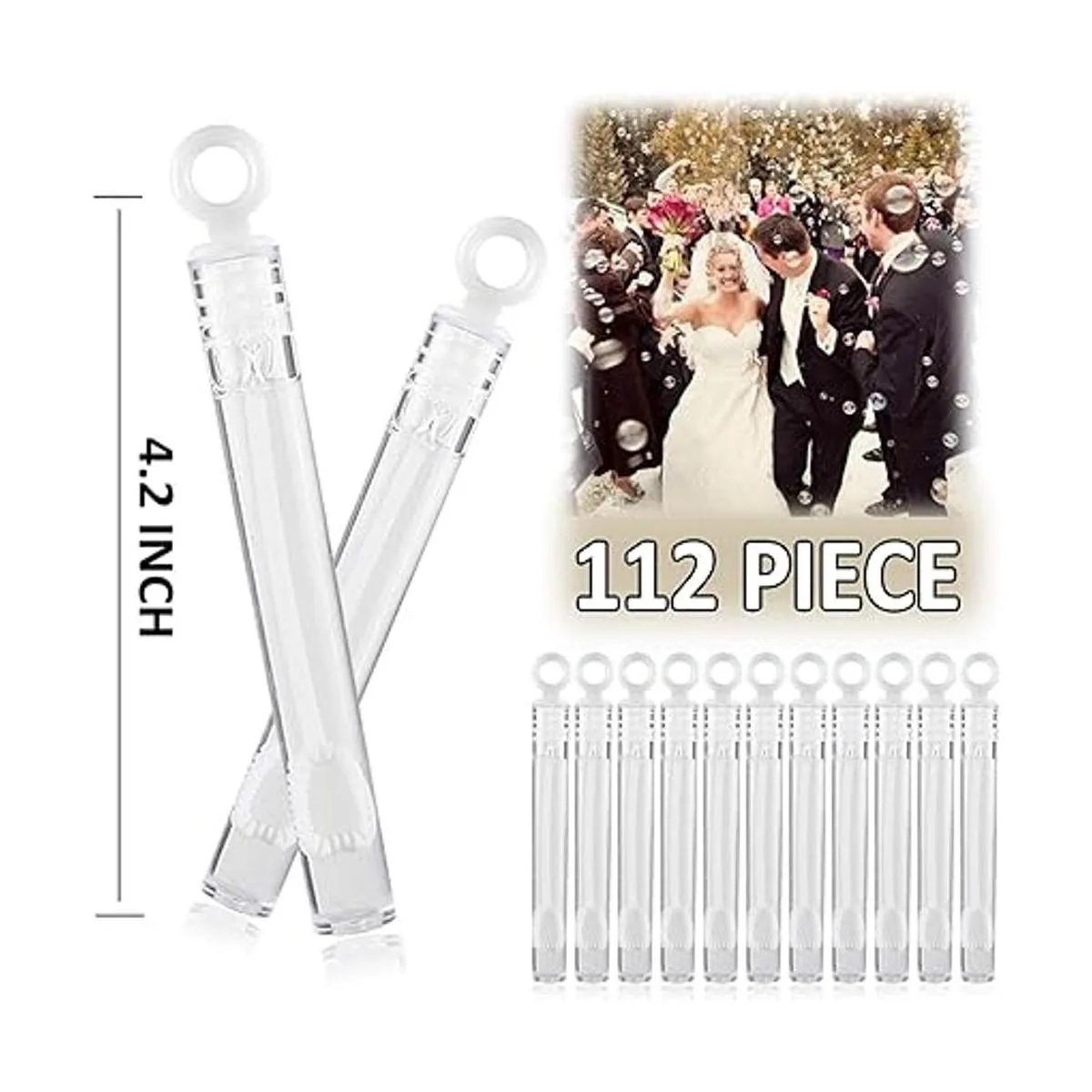 Paquete de 112 mini varita de burbujas de boda estilo círculo blanco, recuerdos de fiesta ideales para aniversarios, suministros de celebración, día de San Valentín, fiestas en la piscina, reunión familiar y gran regalo para parejas, niños y niñas