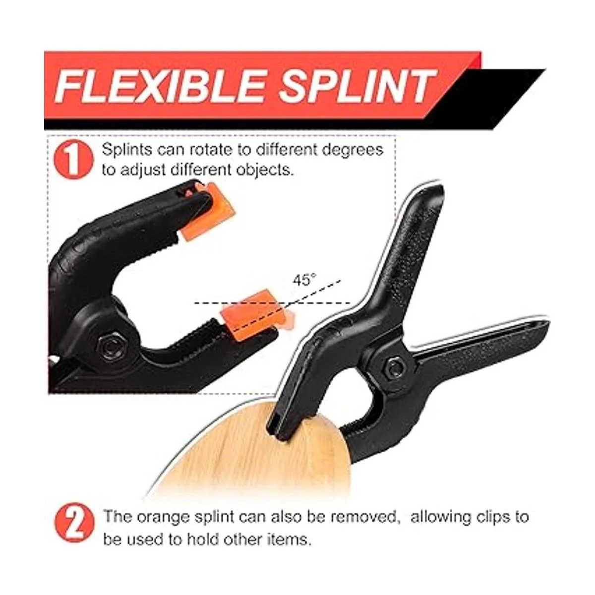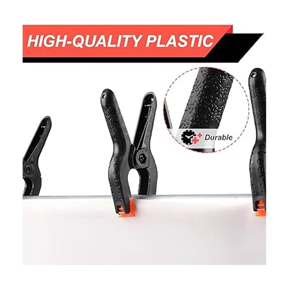 Resorte de alta resistencia: los clips de plástico adoptan un diseño de resorte de alta resistencia, el resorte aplica una cierta presión, abrazadera fuerte y uso eficiente. Es un buen compañero para tus proyectos de bricolaje como fotografía, fondo, carpintería, etc.