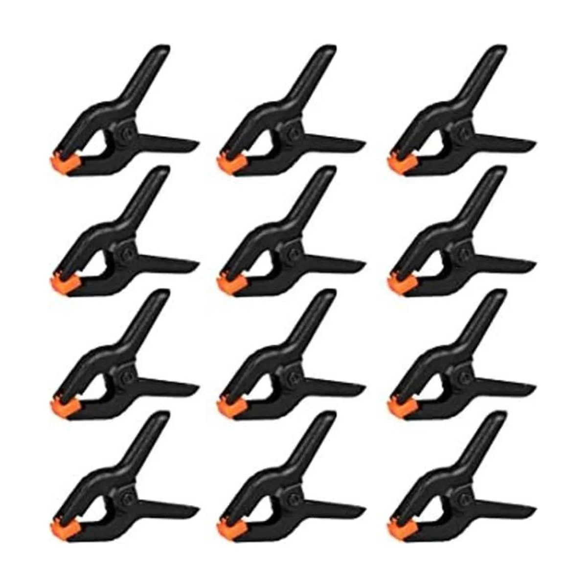 Paquete de 12 abrazaderas de resorte, clips de plástico de 3.5 pulgadas, pequeños clips de telón de fondo, abrazaderas resistentes, clips de resorte para manualidades, soporte de telón de fondo, carpintería, estudios de fotografía negro