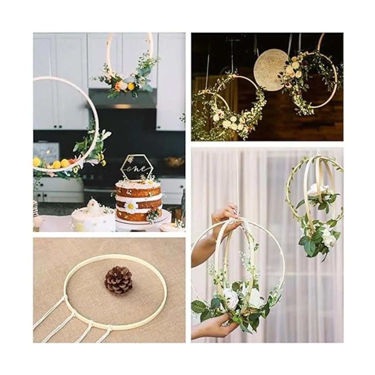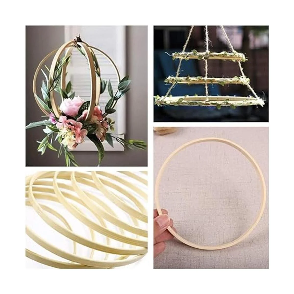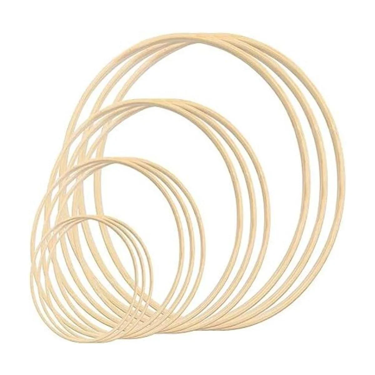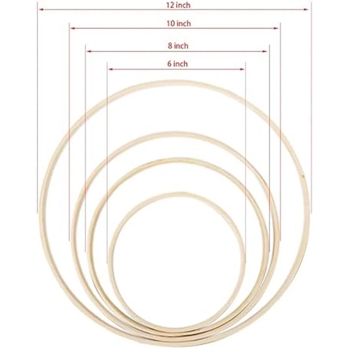 Paquete de 12 arracadas florales de bambú de madera, anillos grandes de madera para manualidades, círculos de bambú, anillos de macramé para atrapasueños, decoración de corona de boda, manualidades para colgar en la pared 681012 pulgadas