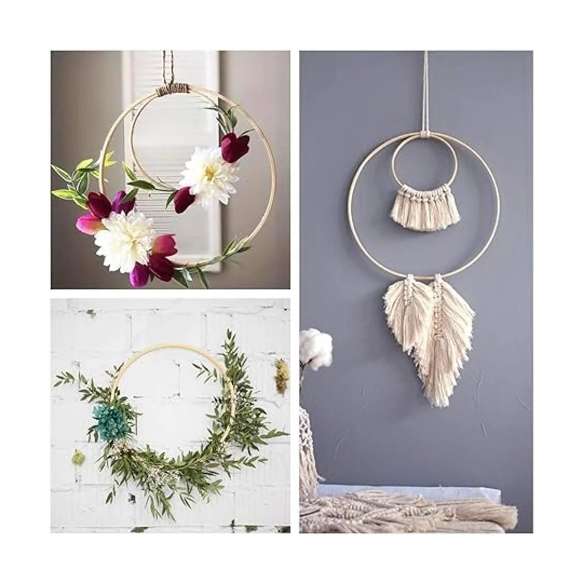 Los anillos de corona de madera son perfectos para proyectos de manualidades y decoración del hogar; hacer corona de aro floral, atrapasueños, manualidades de macramé, colgadores de plantas, manualidades colgantes de pared.