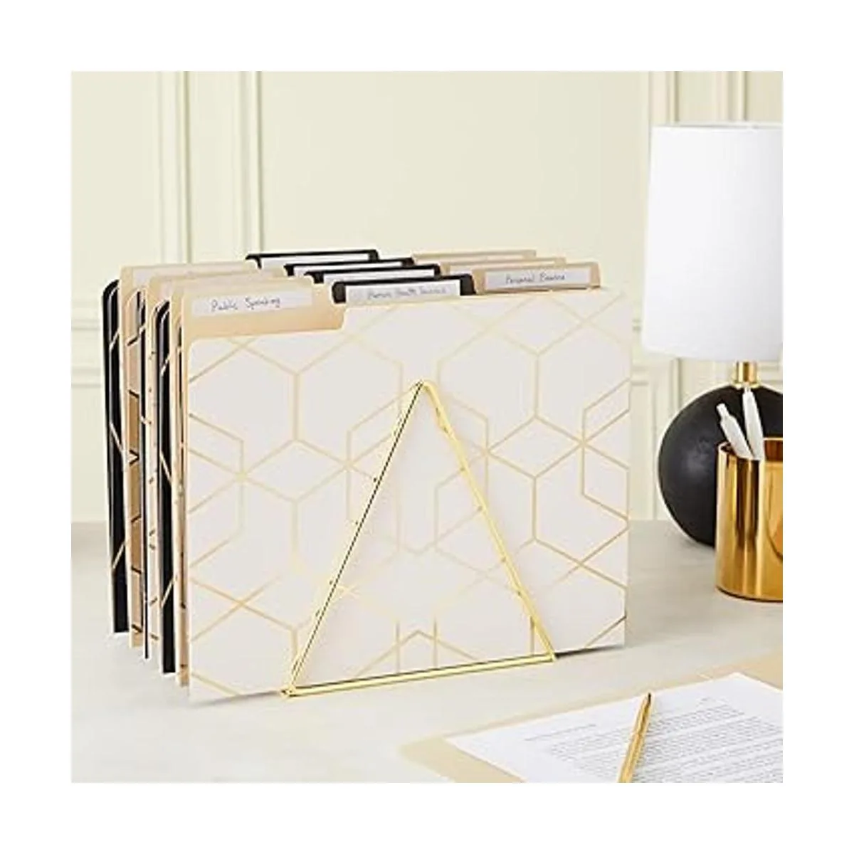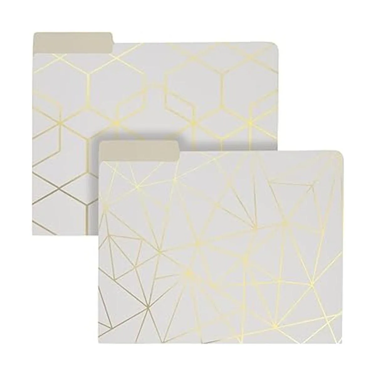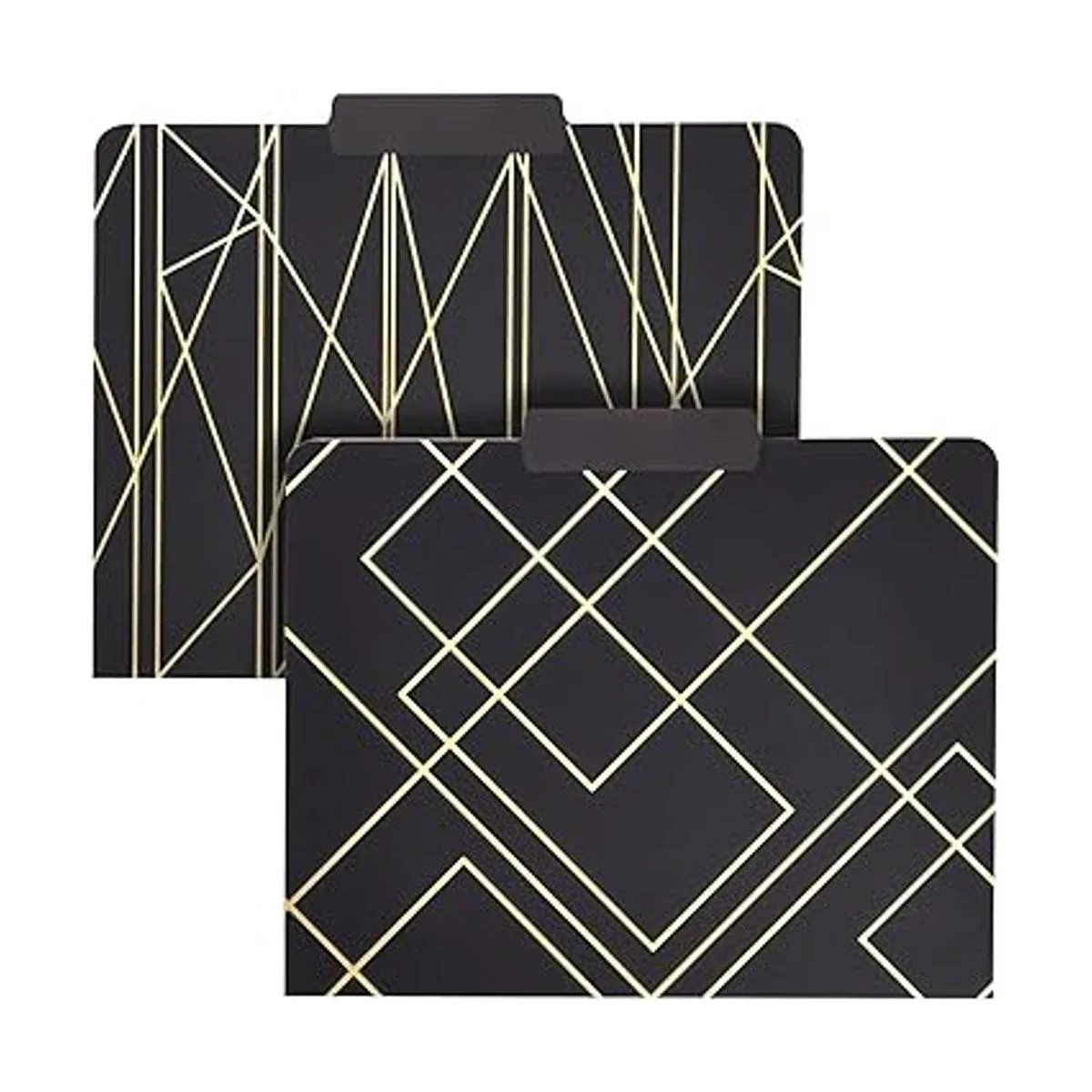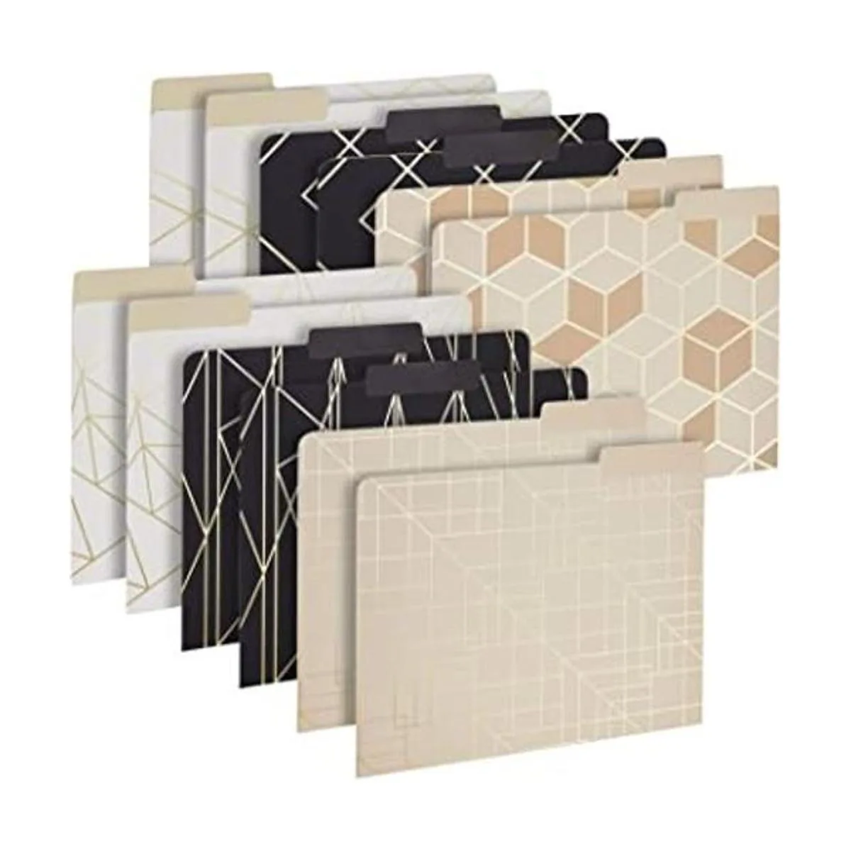 Suministros de oficina dorados: nuestro juego de carpetas de archivos incluye 12 carpetas de archivador con diseños geométricos y dorados; los colores vibrantes elevarán al instante la decoración de tu escritorio u oficina