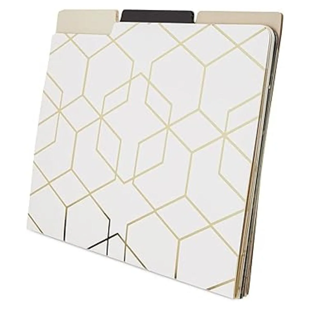 Paquete de 12 carpetas decorativas con lámina dorada geométrica, pestaña de corte de 13, tamaño carta para suministros de oficina 9.5 x 11.5 pulgadas