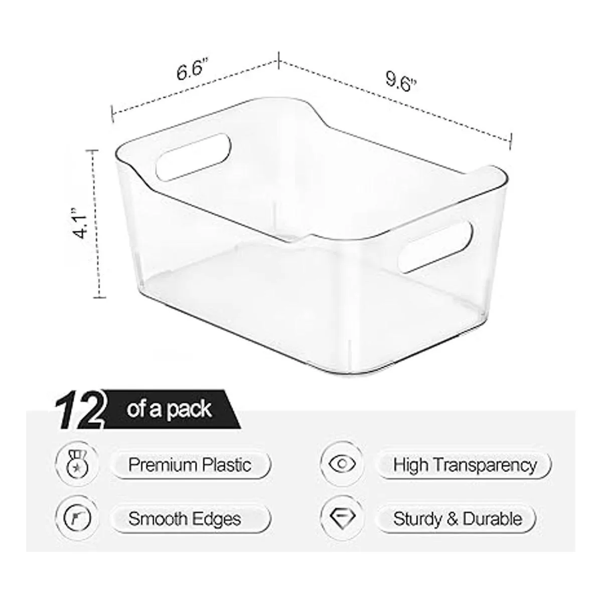 Paquete de 12 Contenedores transparentes para organizar, organización y almacenamiento de despensa, organizador de plástico multiusos para el hogar, contenedores de nevera para refrigerador, cestas de la colección SOHO, armario de canbinet de cocina, contenedores de RV