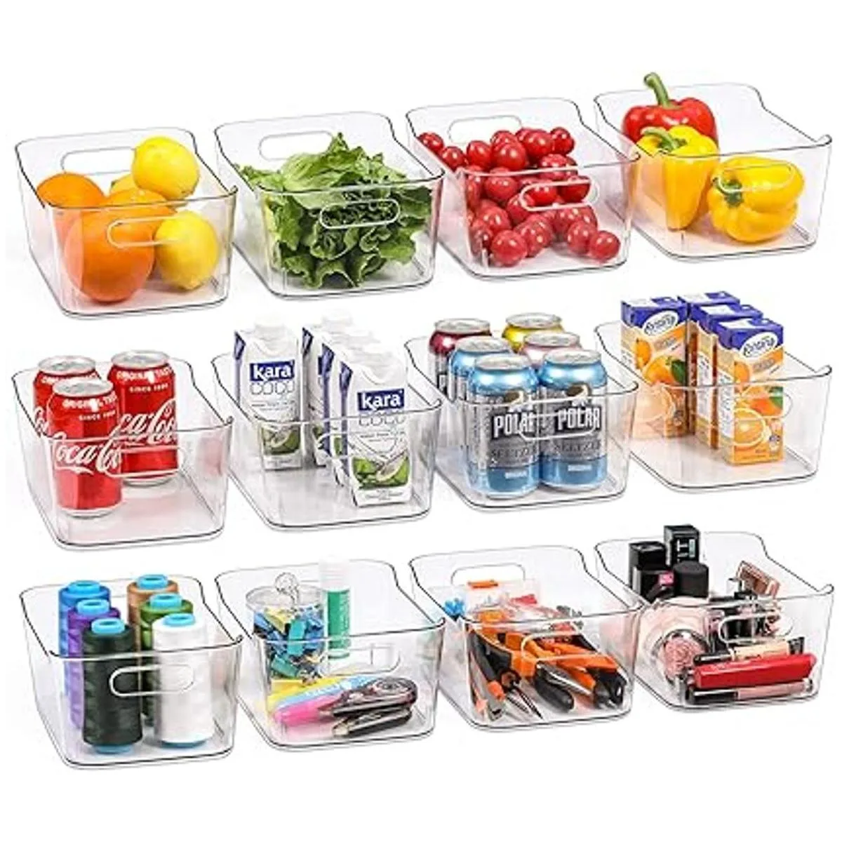 [ Paquete de 12] Contenedores transparentes para organizar, organización y almacenamiento de despensa, organizador de plástico multiusos para el hogar, contenedores de nevera para refrigerador, cestas de la colección SOHO, armario de canbinet de cocina, contenedores de RV