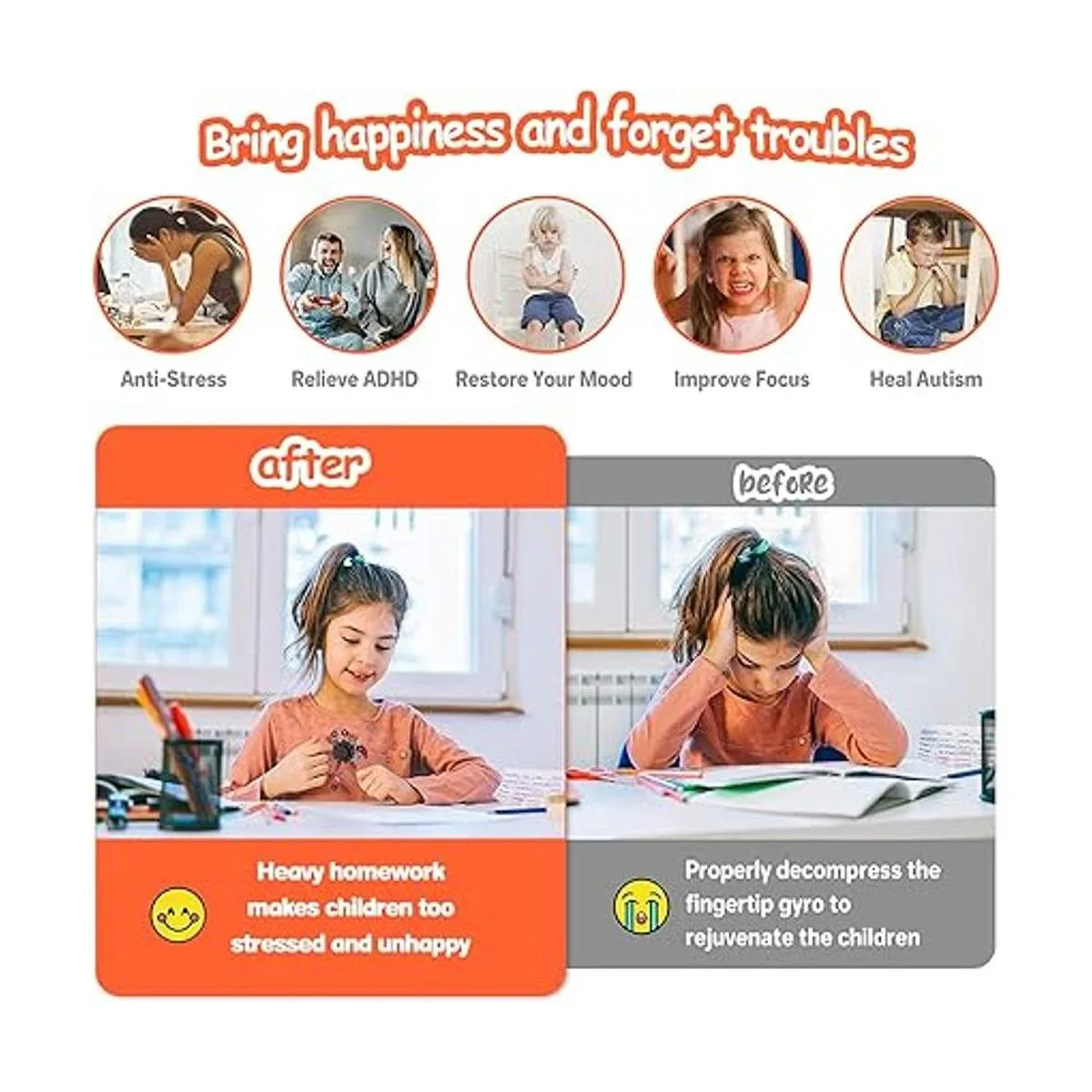 Rotación interesante: un juguete de punta redonda no daña tus manos, y a adultos y niños les encantará. Se puede poner en la mesa u otro lugar. A través de la práctica, los juguetes se pueden manipular bien y crear entretenimiento sin fin para ti, especialmente para ayudar a aliviar problemas de TDAH, autismo y concentración.