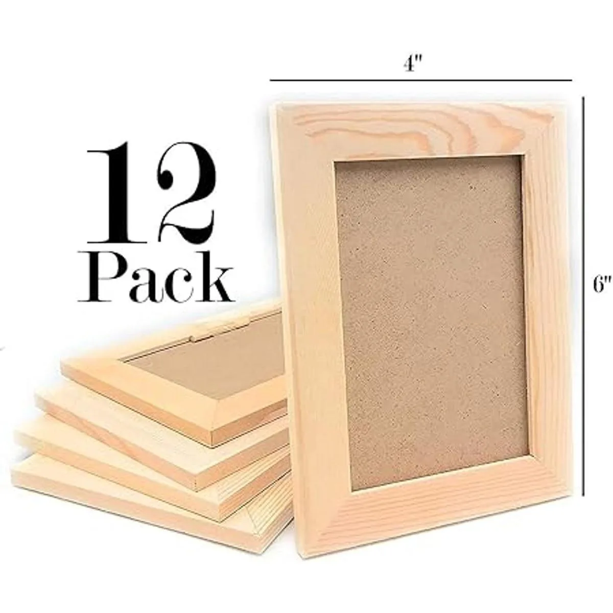 Paquete de 12 marcos de fotos de madera maciza sin terminar para manualidades, soporte de proyecto de pintura o colgar en la pared, tamaño del marco de 6 x 8 pulgadas, capacidad para fotos de 6 x 4 pulgadas, para niños, manualidades, cumpleaños, proyectos escolares