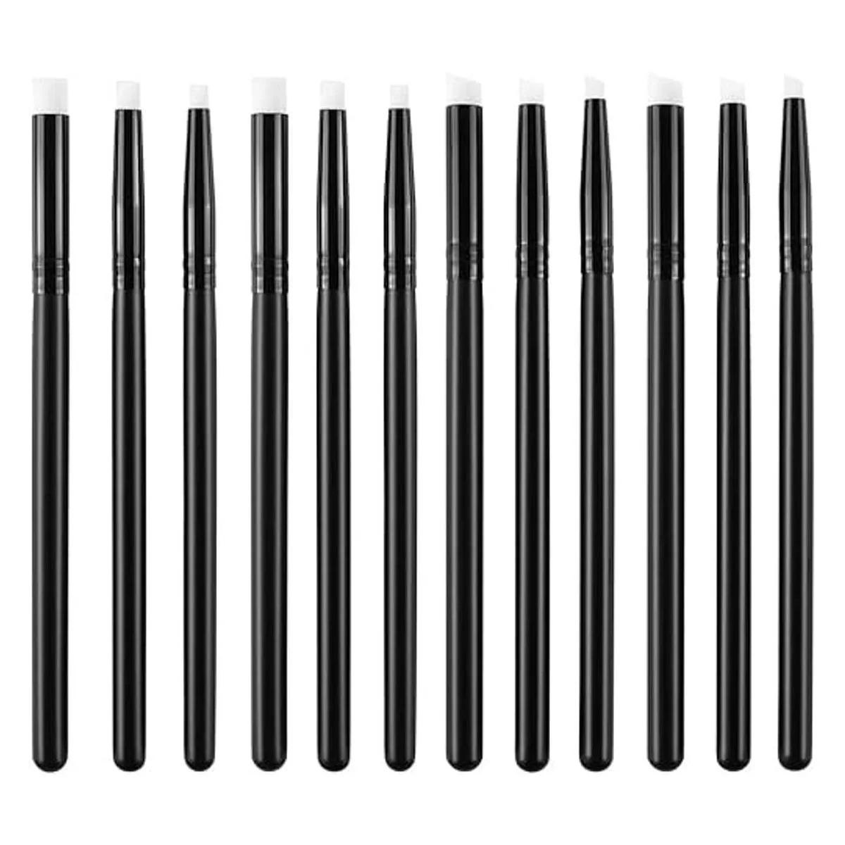 Paquete de 12 mini pinceles de mezcla detallados para hacer tarjetas, juego de pinceles de mezcla de tinta de manualidades, pinceles de fondo para licuadora, artesana de papel de 0.315 in, 0.236 in, 0.157 in, pinceles de cabeza de cepillo en ánguloplano para álbumes de recortes de bricolaje