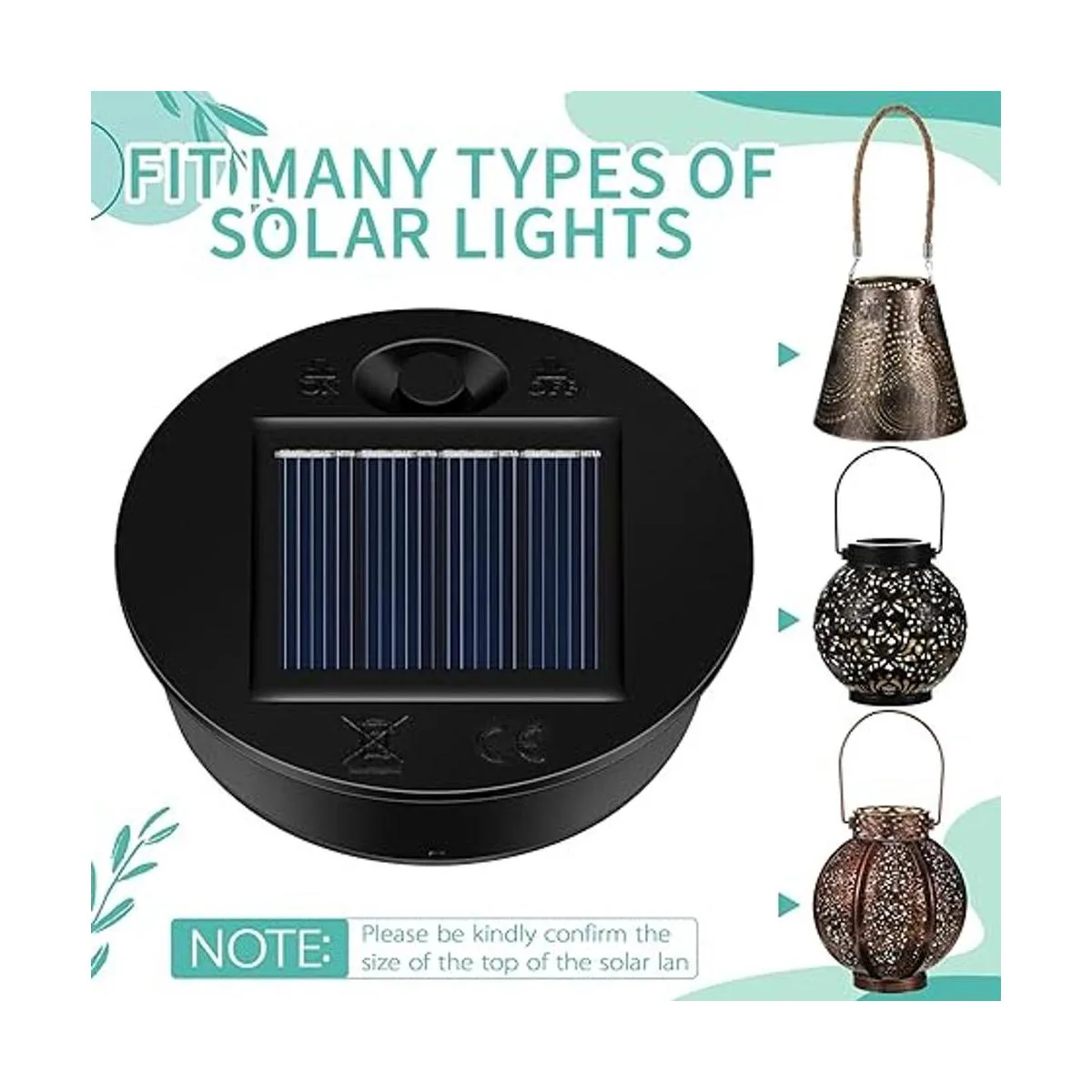Detalles del tamaño: cada pieza de luz solar de repuesto es de 2.8 in de diámetro exterior del anillo, 2.4 in de diámetro interior del anillo, 0.8 in de altura; cualquier linterna adecuada para este tamaño se puede aplicar como una fuente de luz