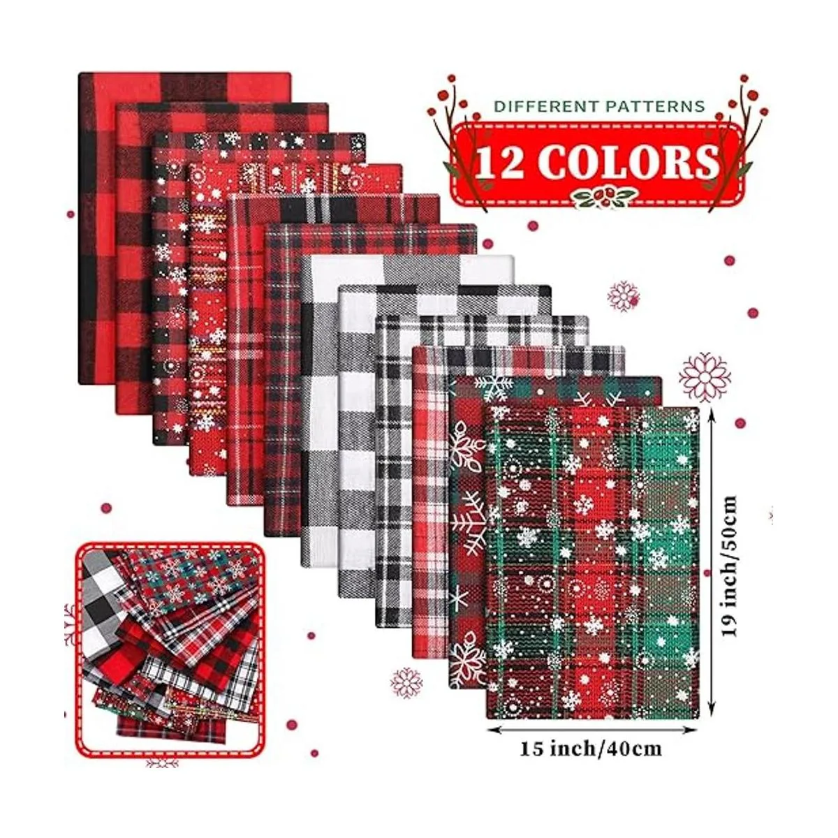 Lo que obtienes: este paquete contiene 12 piezas de cuartos gruesos de rayas de búfalo de Navidad, disponibles en 12 patrones, cada uno mide aproximadamente 19.7 x 15.7 in, comprueba el tamaño antes de comprar