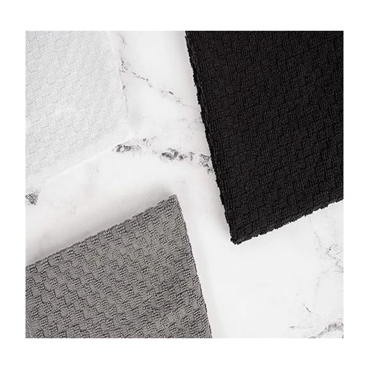 Paquete de 12 toallas de mano para platos de cocina, tejido Dobby 100 algodón, paño de limpieza de rizo absorbente de 410GSM, 15 x 26, 6 negro6 blanco