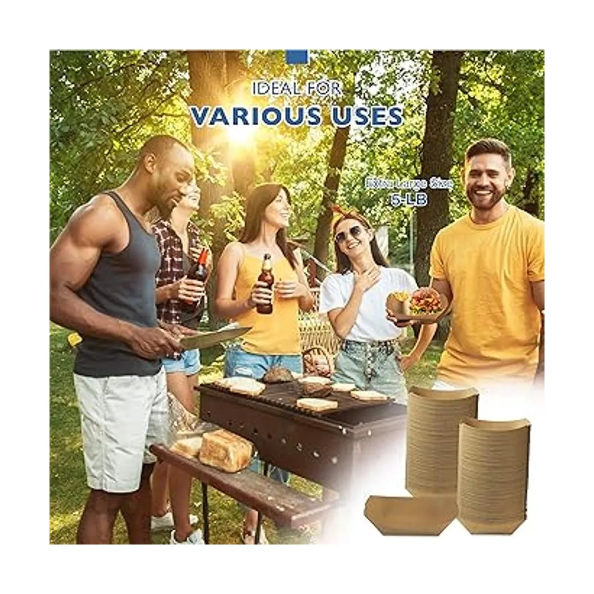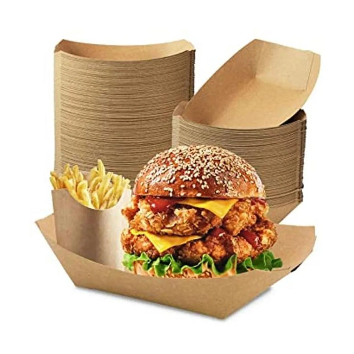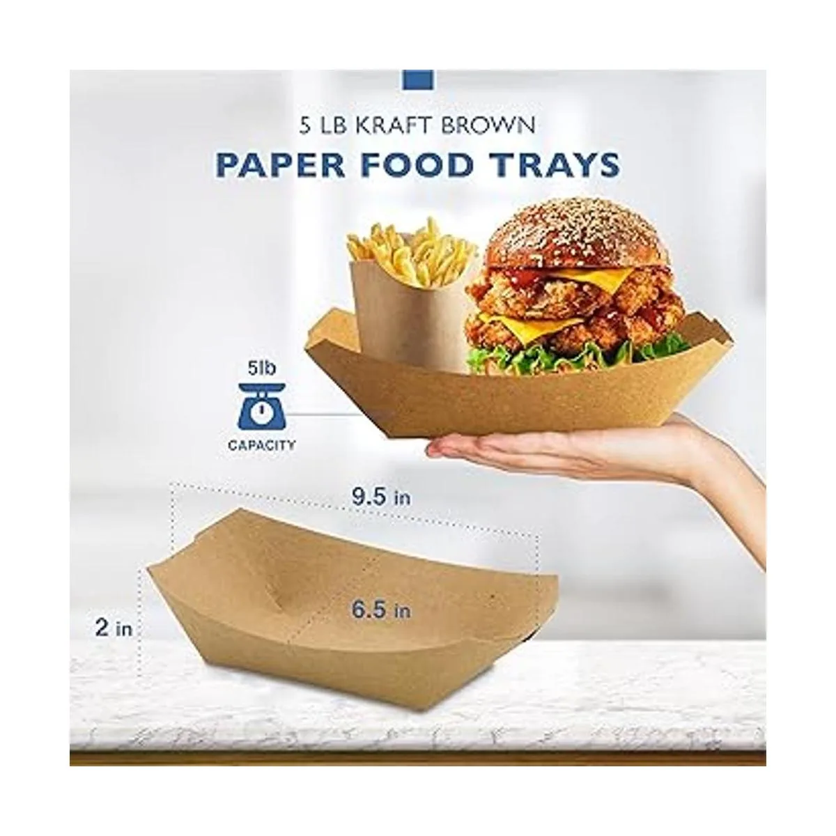 Paquete de 125 Bandejas de papel kraft desechables de 5 libras, resistentes a la grasa, comida rápida, cesta de cartón para barcos, para fiestas, ferias, pícnics carnavales, sostiene tacos, nachos, patatas fritas, perros de maíz caliente