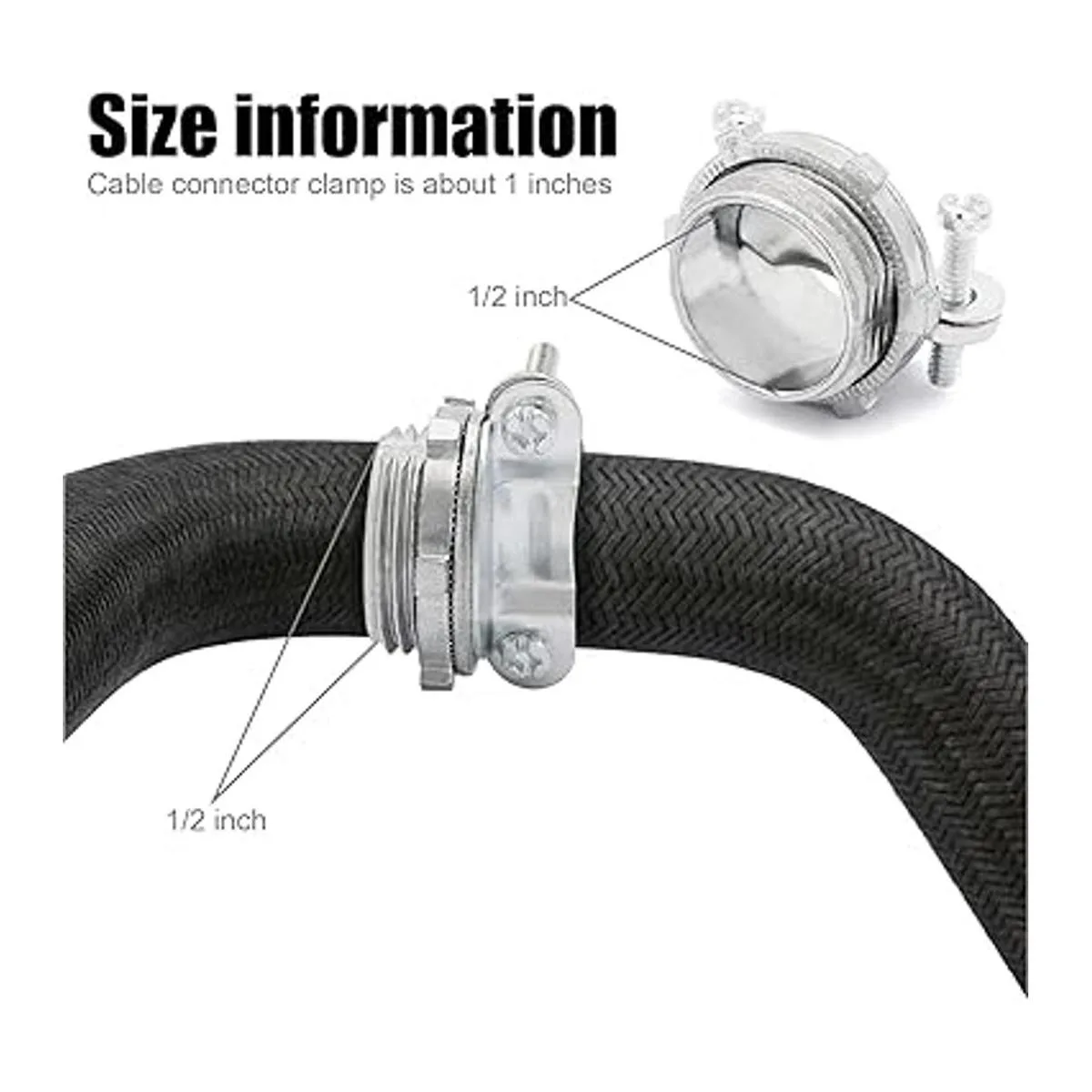Paquete de 15 conectores de cable tipo abrazadera NM de 12 pulgada para cables de protección de conductos metálicos plateados, zinc