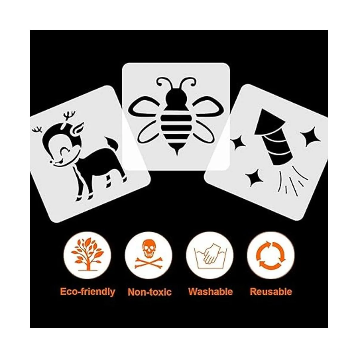 No tóxico y seguro para el bebé: estamos seguros de que nuestras plantillas cumplen con altos estándares de calidad. El material plástico PET ecológico asegura que estas plantillas sean seguras para los niños. Además, es beneficioso para deleitar la imaginación de los niños y ayudar a los niños a desarrollar su inteligencia y creatividad.
