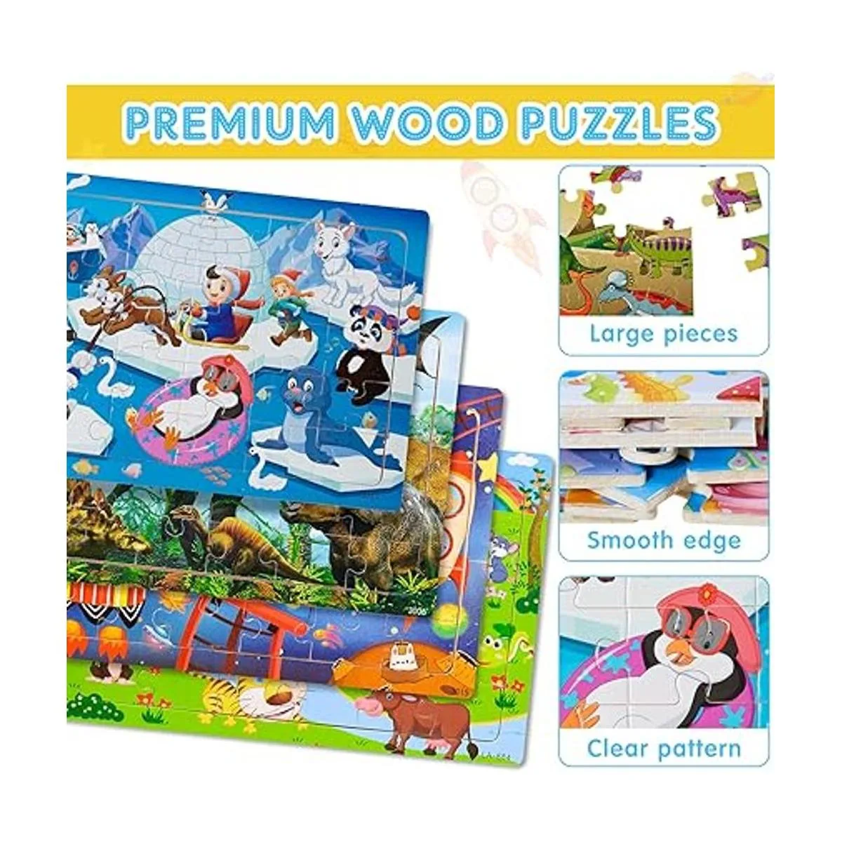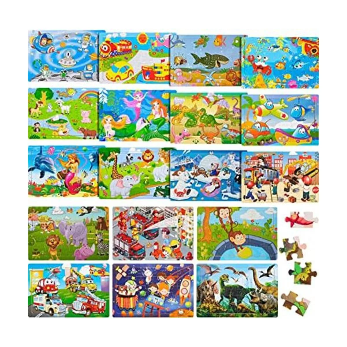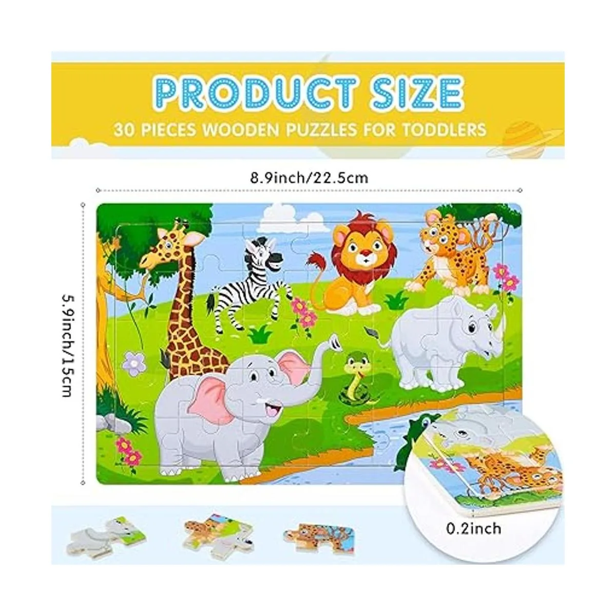 Paquete de 18 rompecabezas de madera para niños mayores de 4 años, 30 piezas rompecabezas educativos de madera para niños y niñas