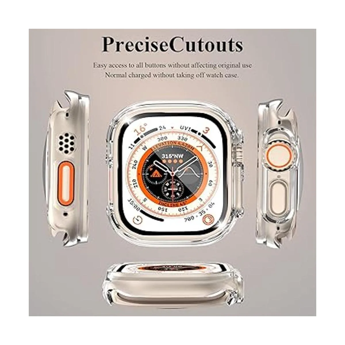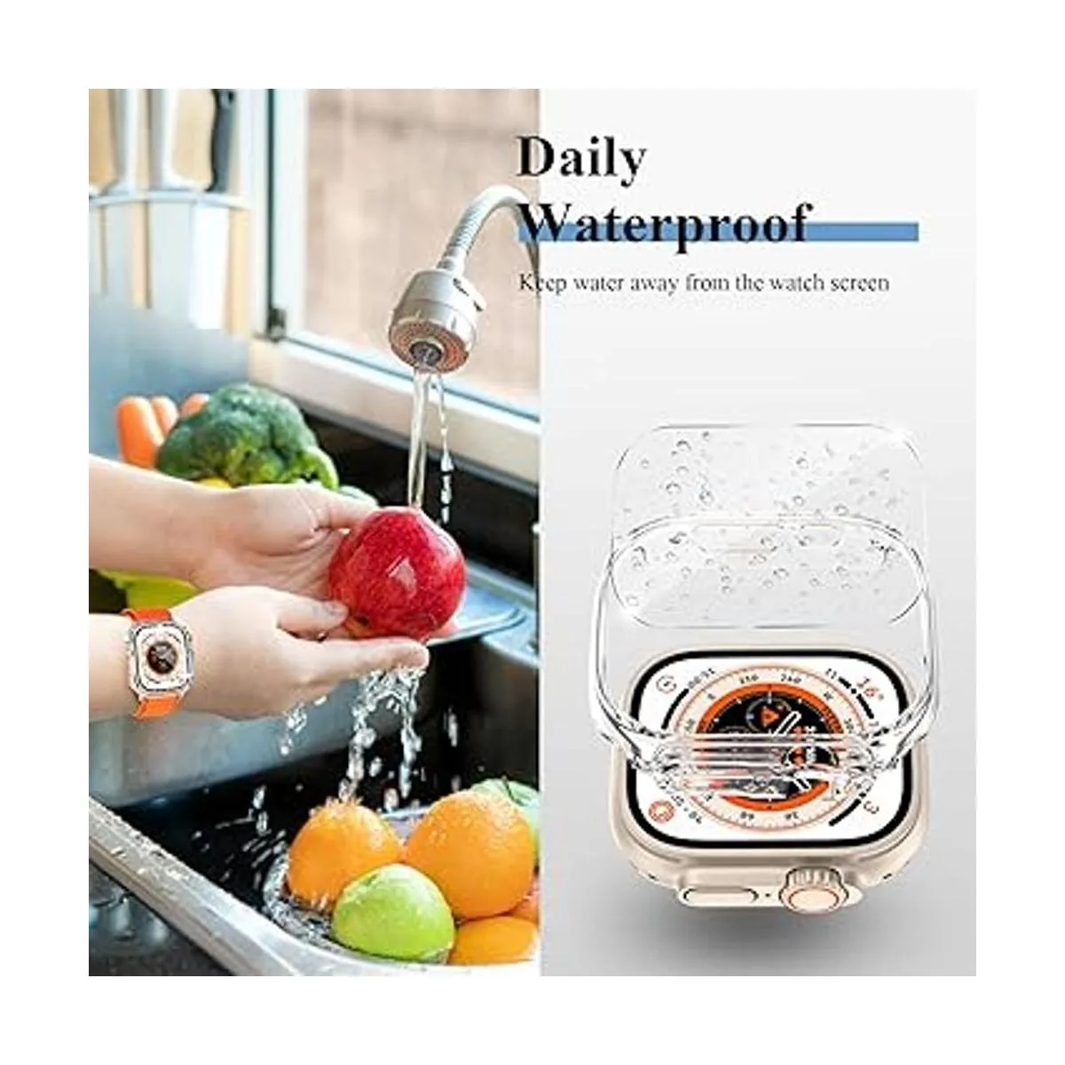 Paquete de 2 2 Funda compatible con Apple Watch Ultra de 1.79 pulgadas, paquete de 2 fundas rígidas de policarbonato 2 accesorios de película de vidrio templado, impermeable, transparente, dureza 9H, a prueba de golpes, transparente
