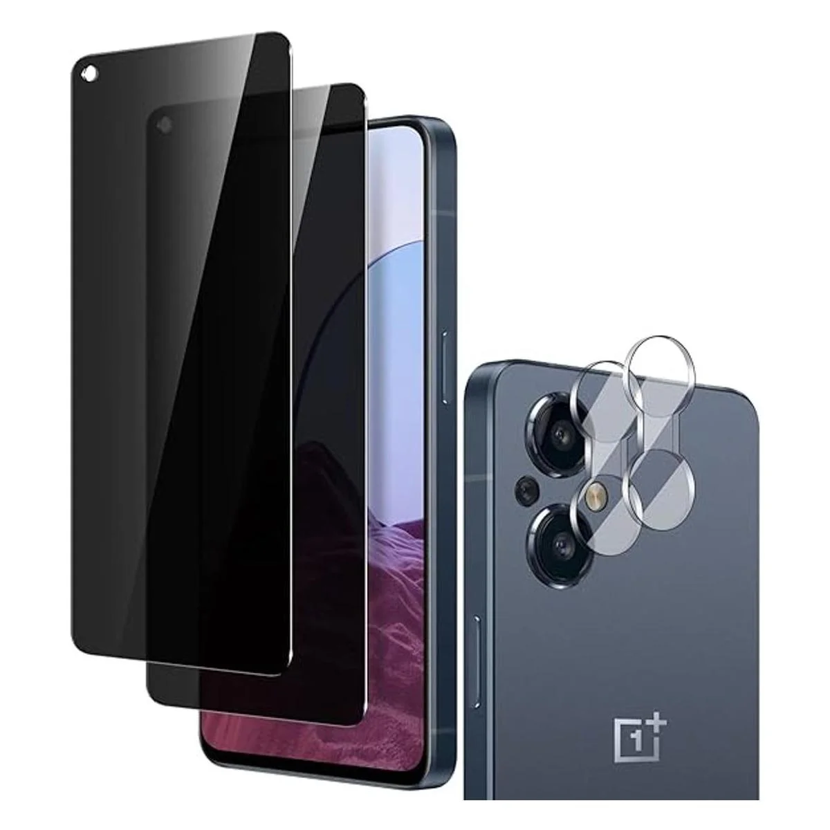Paquete de 2 2 protectores de pantalla de privacidad para OnePlus Nord N20 5G, paquete de 2 protectores de pantalla antiespía de vidrio templado 9H y 2 protectores de lente de cámara, sin burbujas, antiarañazos, compatible con fundas OnePlus Nord N20 de 6.43 pulgadas