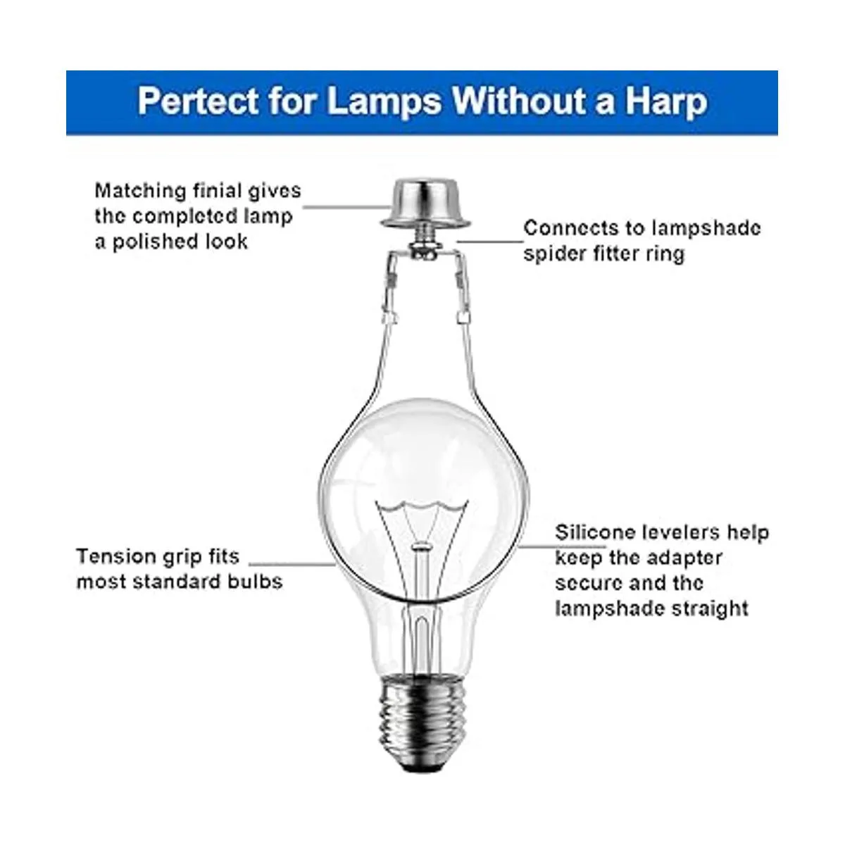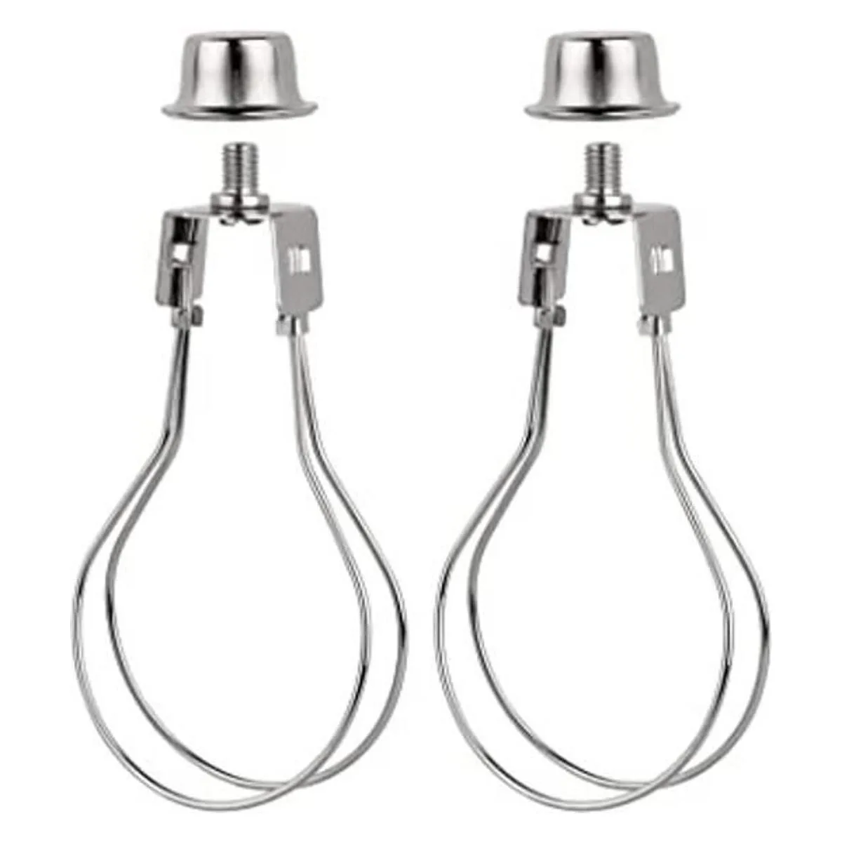 Paquete: paquete de 2 adaptadores de clip de bombilla de color plateado con acabado de perilla de tapa.