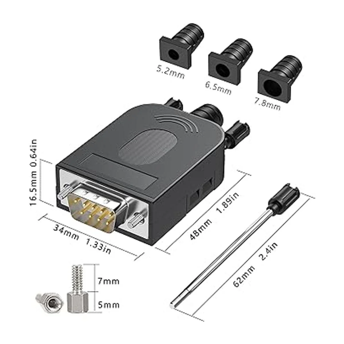 Cable DB9 de bricolaje: con conectores macho y hembra de 9 pines, puedes hacer cable DB9 o cable USB a RS232 / RS485 por ti mismo. La longitud del cable y la secuencia de cableado se pueden personalizar