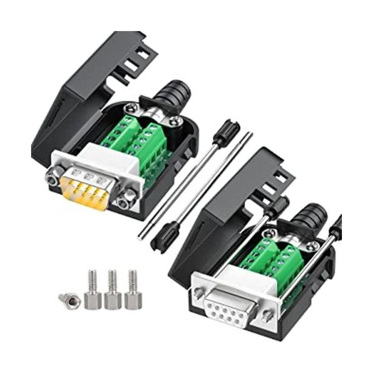 Paquete de 2 adaptadores serie DB9 que no necesita soldadura. Adaptador RS232 RS485 de 9 pines para conector de terminal, módulo de señal con tornillos, tuercas y destornillador 1 macho 1 hembra