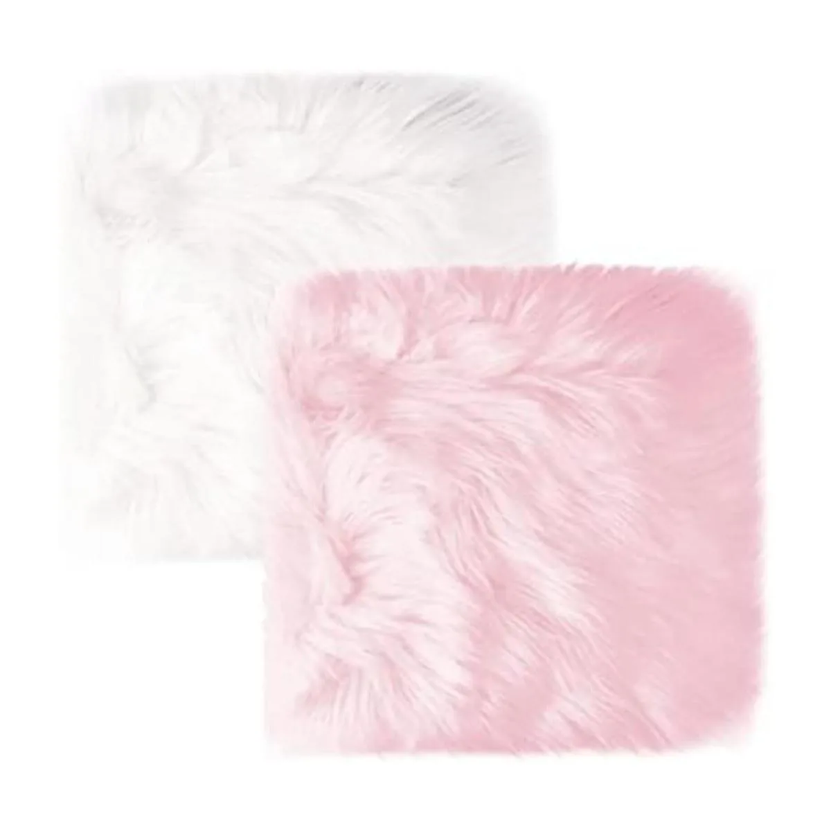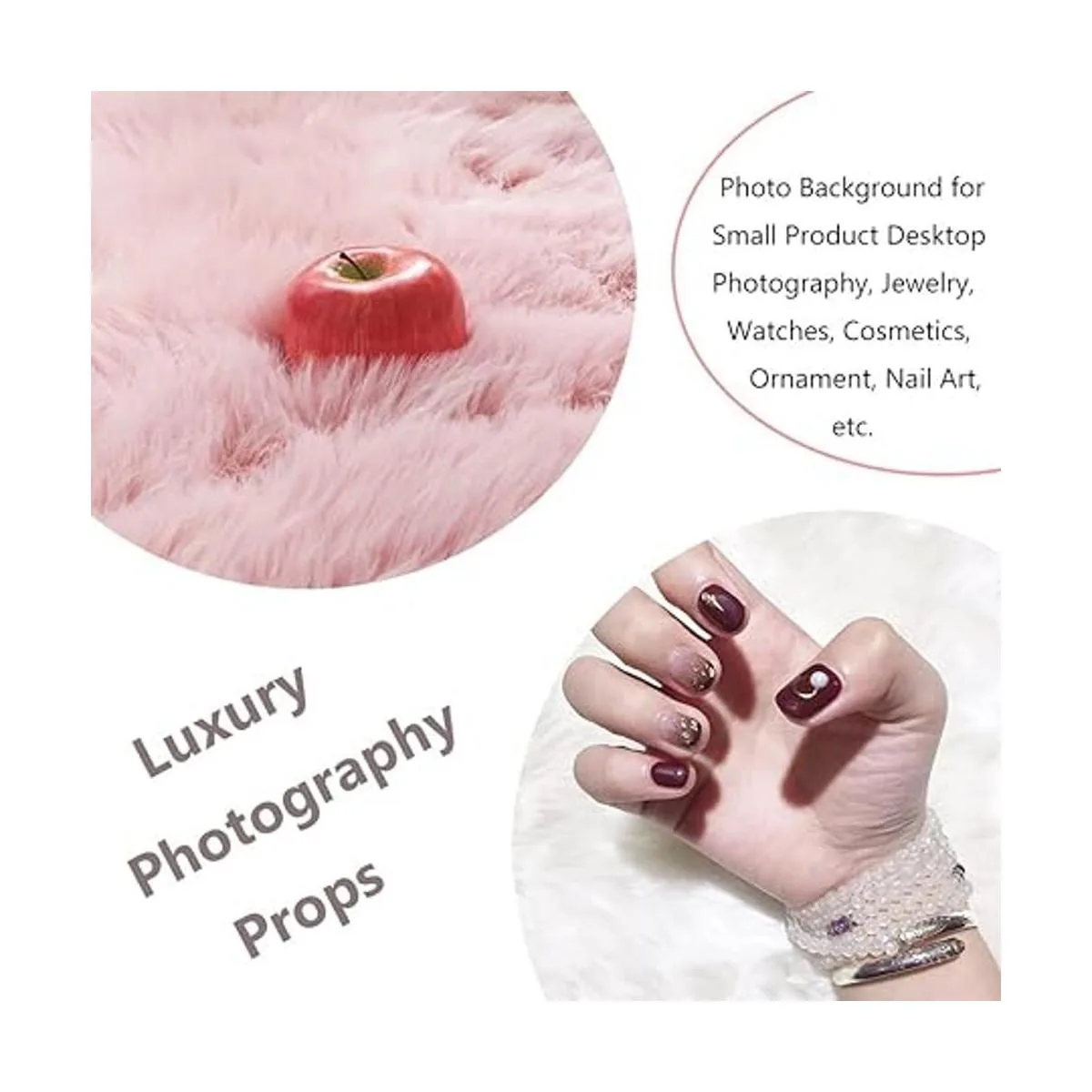 Paquete de 2 alfombras pequeñas de 12 pulgadas de pelo sintético esponjoso, fondo de fotos de producto pequeño y accesorios de fotos de lujo, ideal para fotografía de mesa, joyas, arte de uñas, decoración del hogar cuadrado, blanco rosa