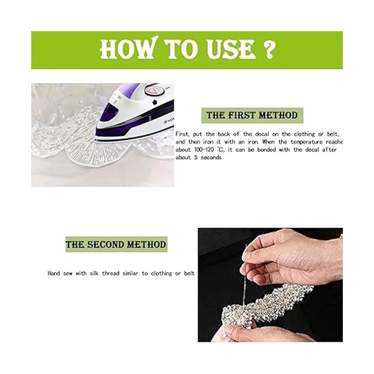 Método de uso: pegamento adhesivo termofusible para planchar, fijado en caliente, pegado, cosido en cristal de diamantes de imitación