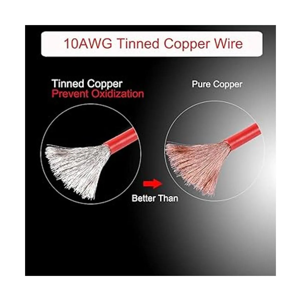 Grueso y duradero: hecho de alambre de cobre estañado de silicona de alta calidad de 10 AWG, que siempre se mantiene suave y no se endurece en climas fríos. Muy resistente, grueso y duradero.