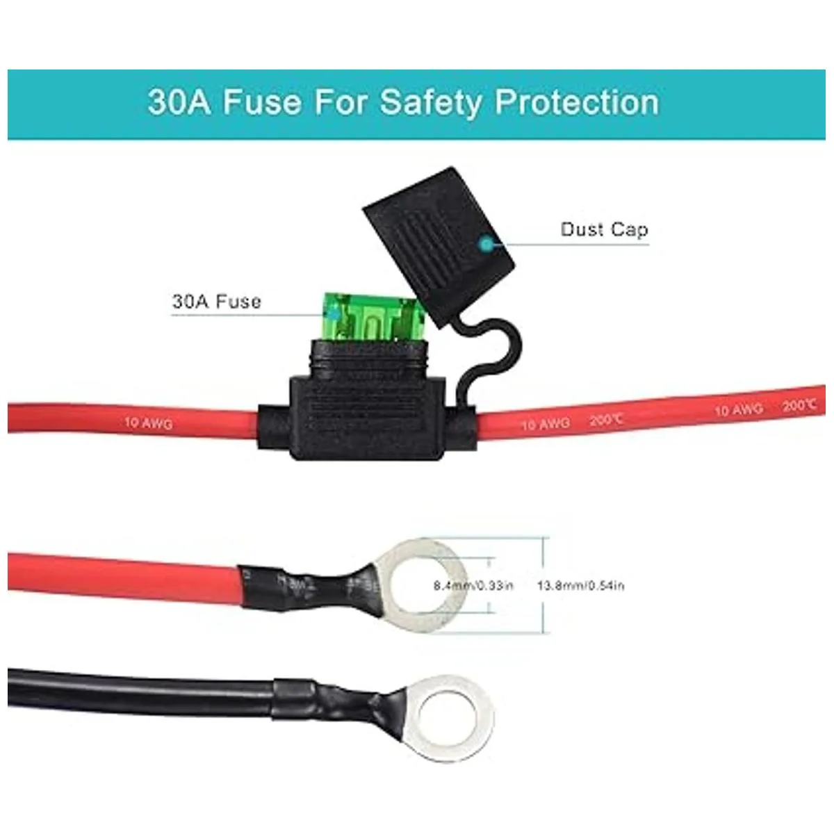 Paquete de 2 Arnés de terminal SAE a anillo tórico de 2 pies de 10 AWG Terminal de anillo tórico con ojales, arnés de calibre 10 con fusible de 30 A, cable de carga de conexión y desconexión rápida SAE