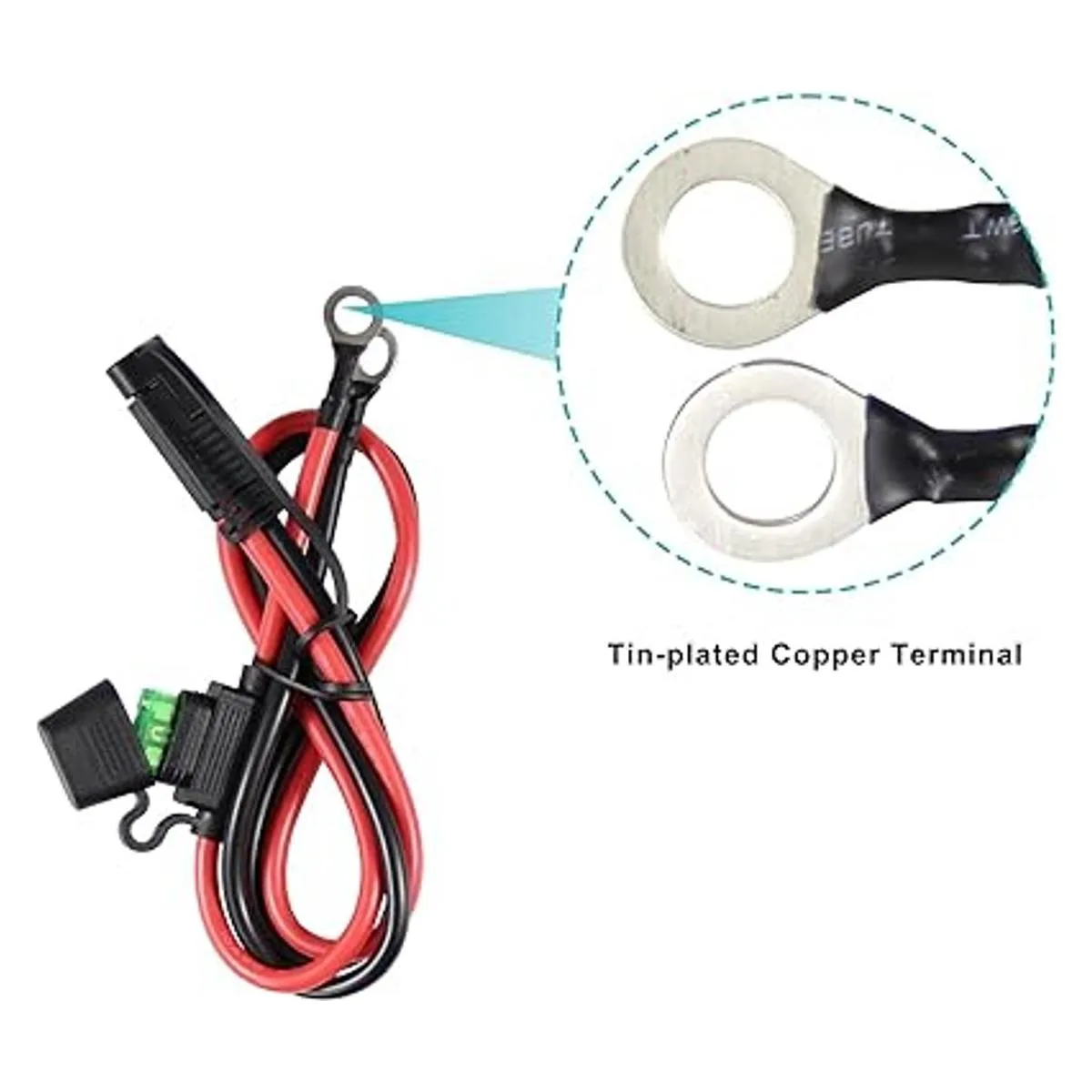 Fácil de instalar: acceso a tu batería en cualquier momento y en cualquier lugar, conexión y desconexión rápidas, fácil de instalar. No solo puedes alimentar directamente por la salida SAE existente de tu motocicleta, sino que también obtener energía de la batería conectando al cable de extensión de terminal de anillo.