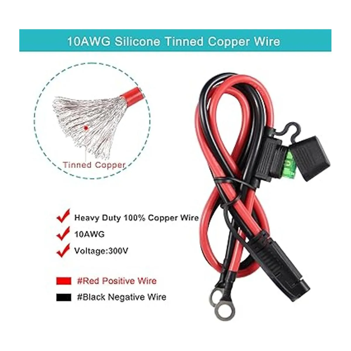 El paquete incluye: 2 cables de terminal de anillo SAE a ojal de 10 AWG de 2 pies: resistente al calor y a la corrosión que funciona bien en un amplio rango de voltaje de CC 1224 V, ideal para la mayoría de vehículos.