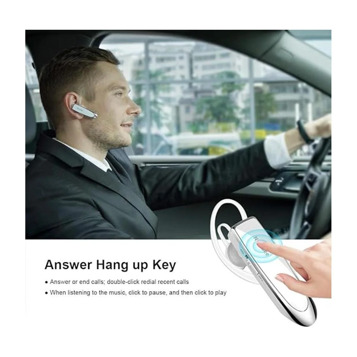 Paquete de 2 Auriculares Bluetooth V5.0 inalámbricos manos libres, 24 horas, auriculares de conducción, 60 días de tiempo de espera con micrófono de cancelación de ruido, auriculares para iPhone, Android, laptop, camión blanco