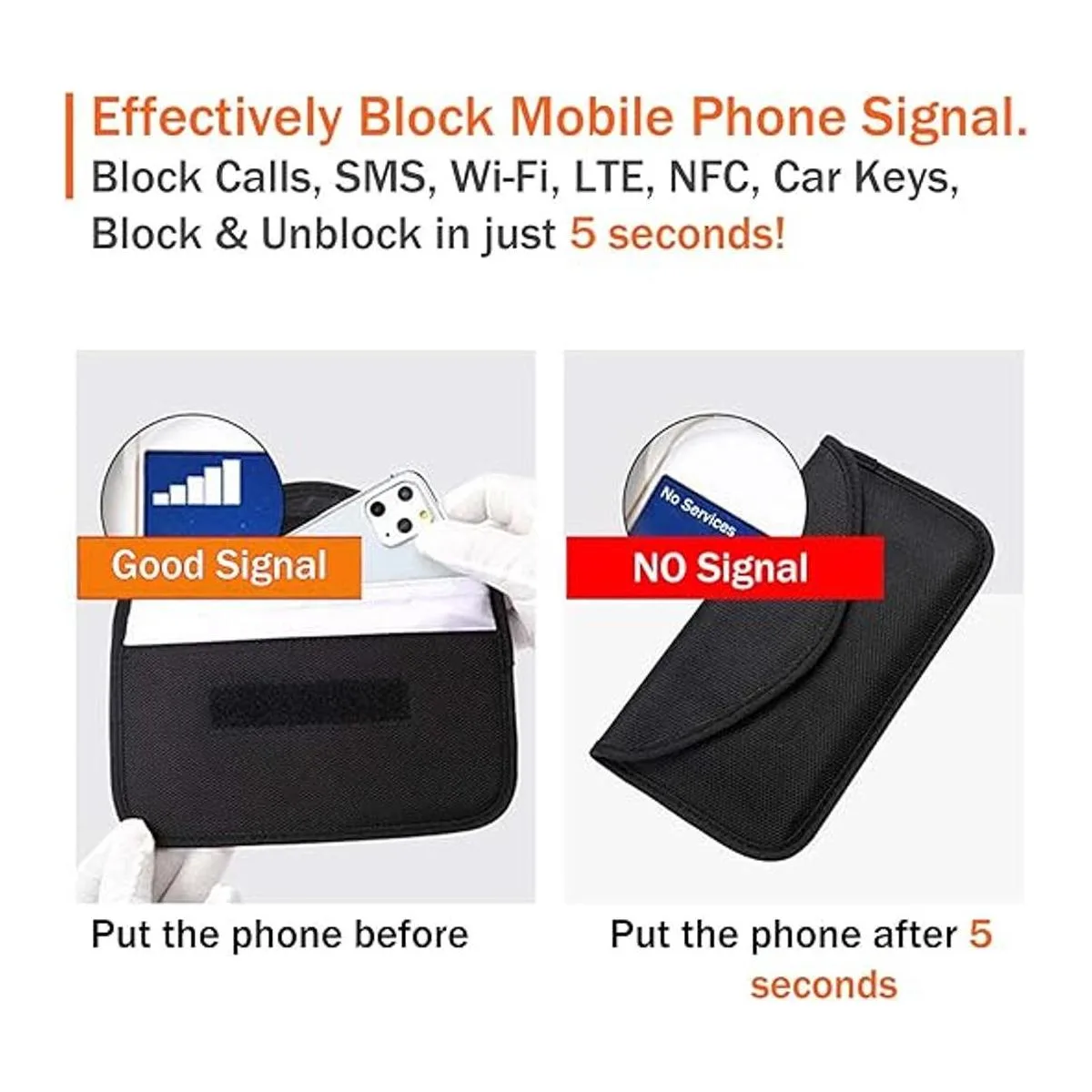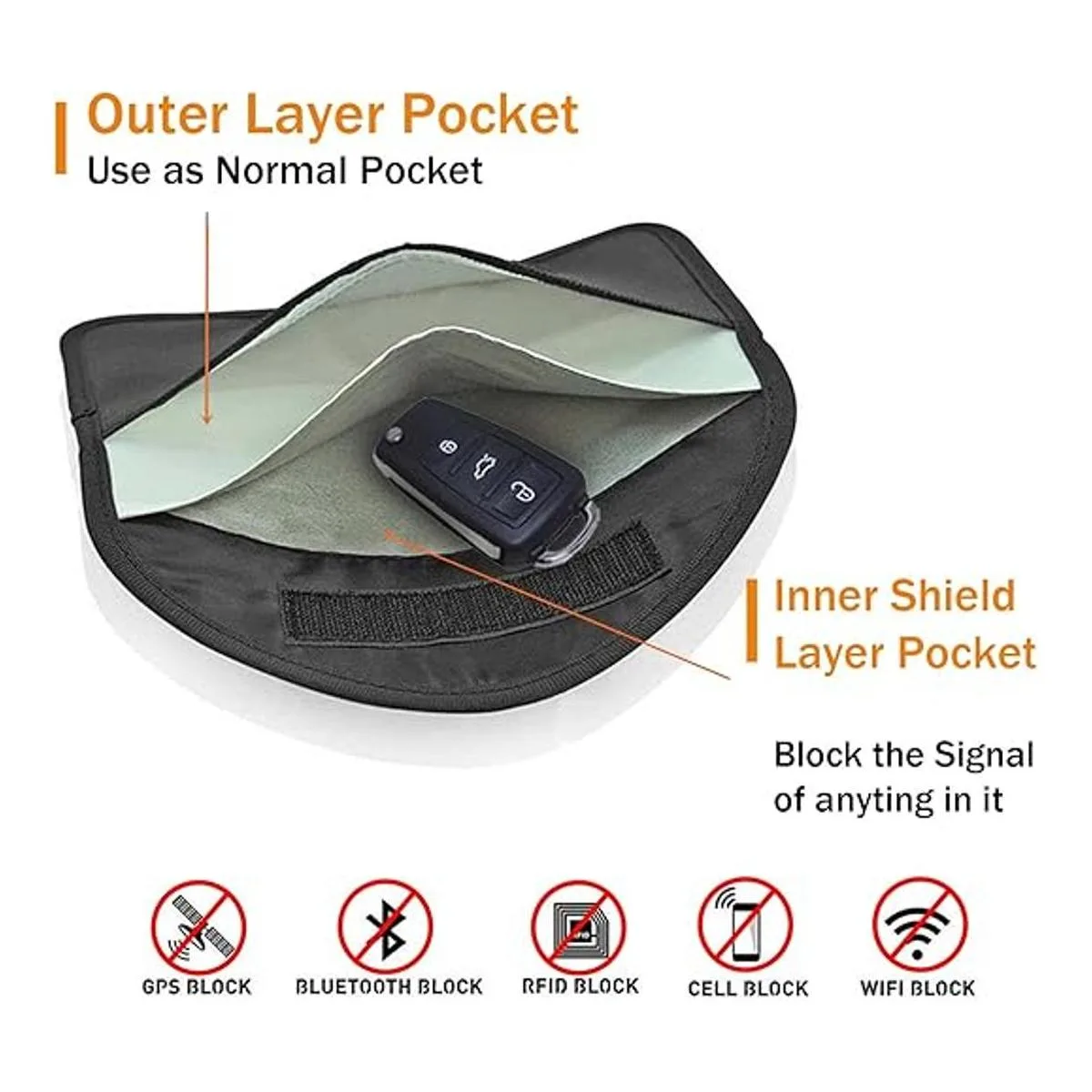 Bolsa de bloqueo de señal: la capa interior bloquea las señales, la capa exterior negra de cuero se puede utilizar como una funda normal para asegurar bloquear la señal.