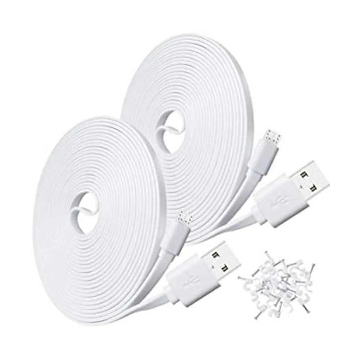 Cable largo y plano perfecto: el cable de alimentación de extensión micro USB de 10 pies mantiene tu cámara de seguridad interior o exterior conectada a una distancia mucho mayor. El cable de extensión de alimentación USB plano es fácil de pasar por una pequeña grieta, por lo que no necesita taladrar.