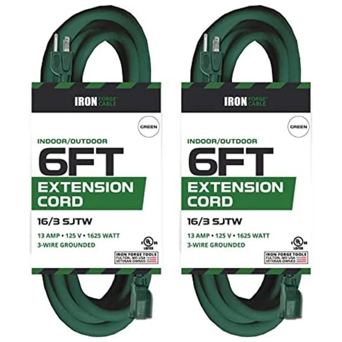 Paquete de 2 cables de extensión para exteriores de 6 pies, cable eléctrico SJTW verde de 3 clavijas 163