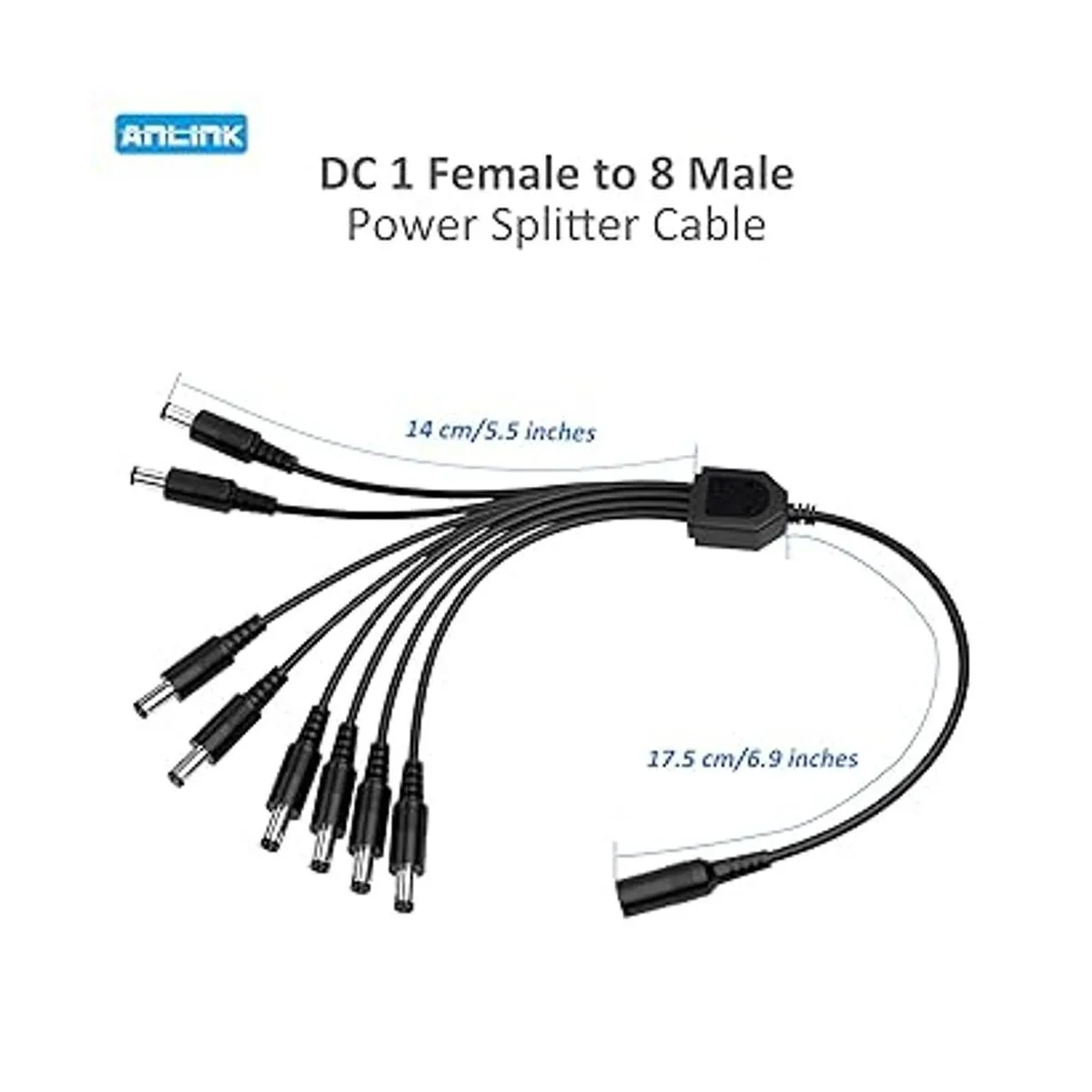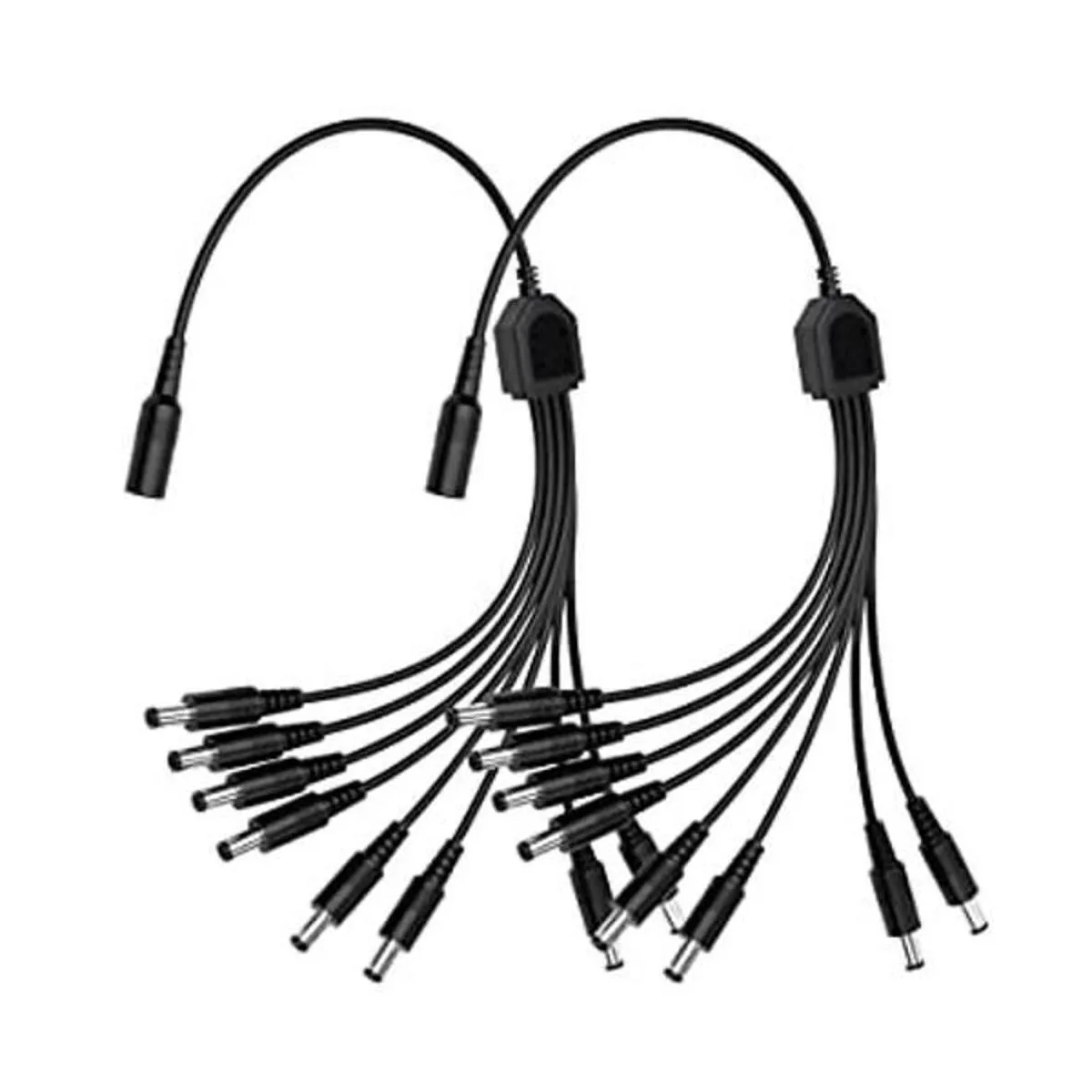 Una forma cómoda y rentable de encender 8 cámaras/tiras de luces LED con 1 adaptador de corriente. til para alimentar varias cámaras desde un adaptador central. Evita soldar con un conector de enchufe CC de 0.217 x 0.083 in.