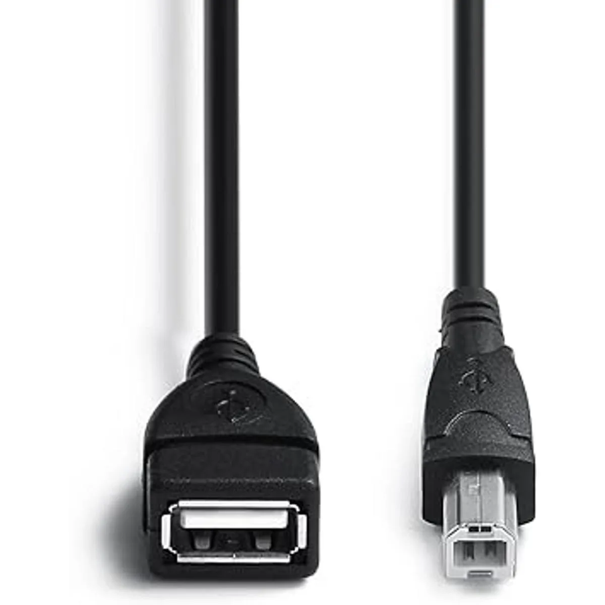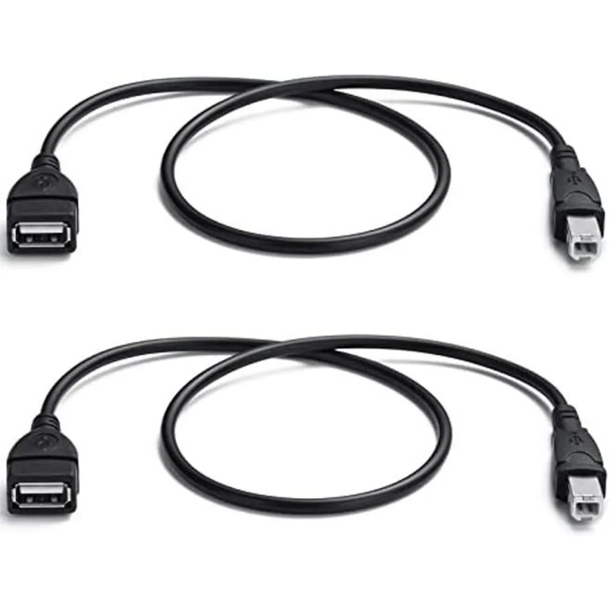 Paquete de 2 cables USB 2.0 A hembra a USB B macho para cables de conexión de extensor de impresora, adaptador USBAFUSBBM cables USBAUSBB negro