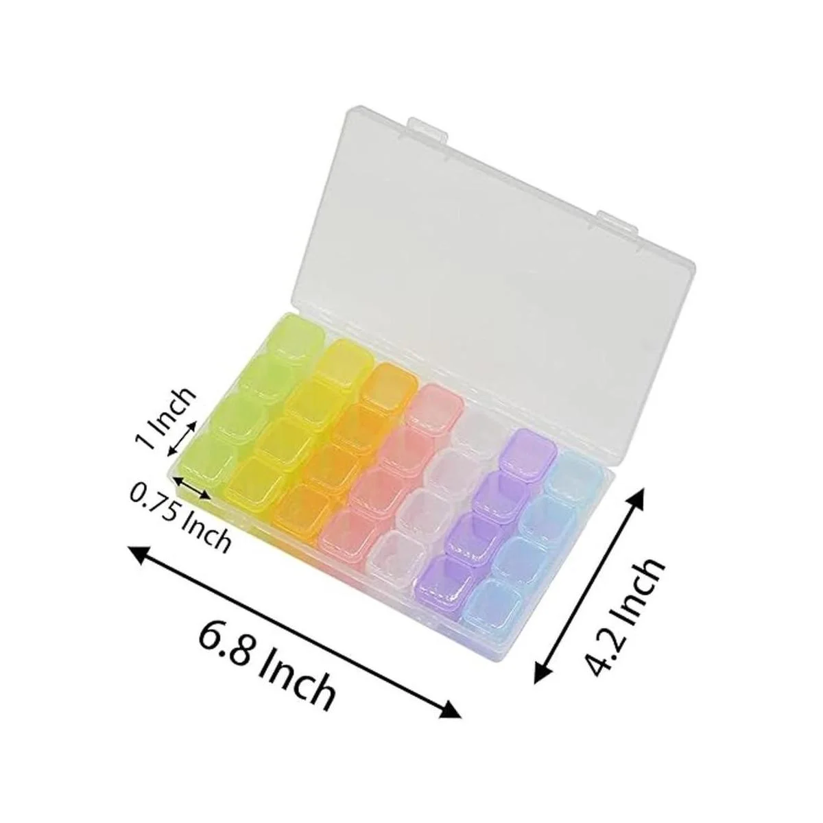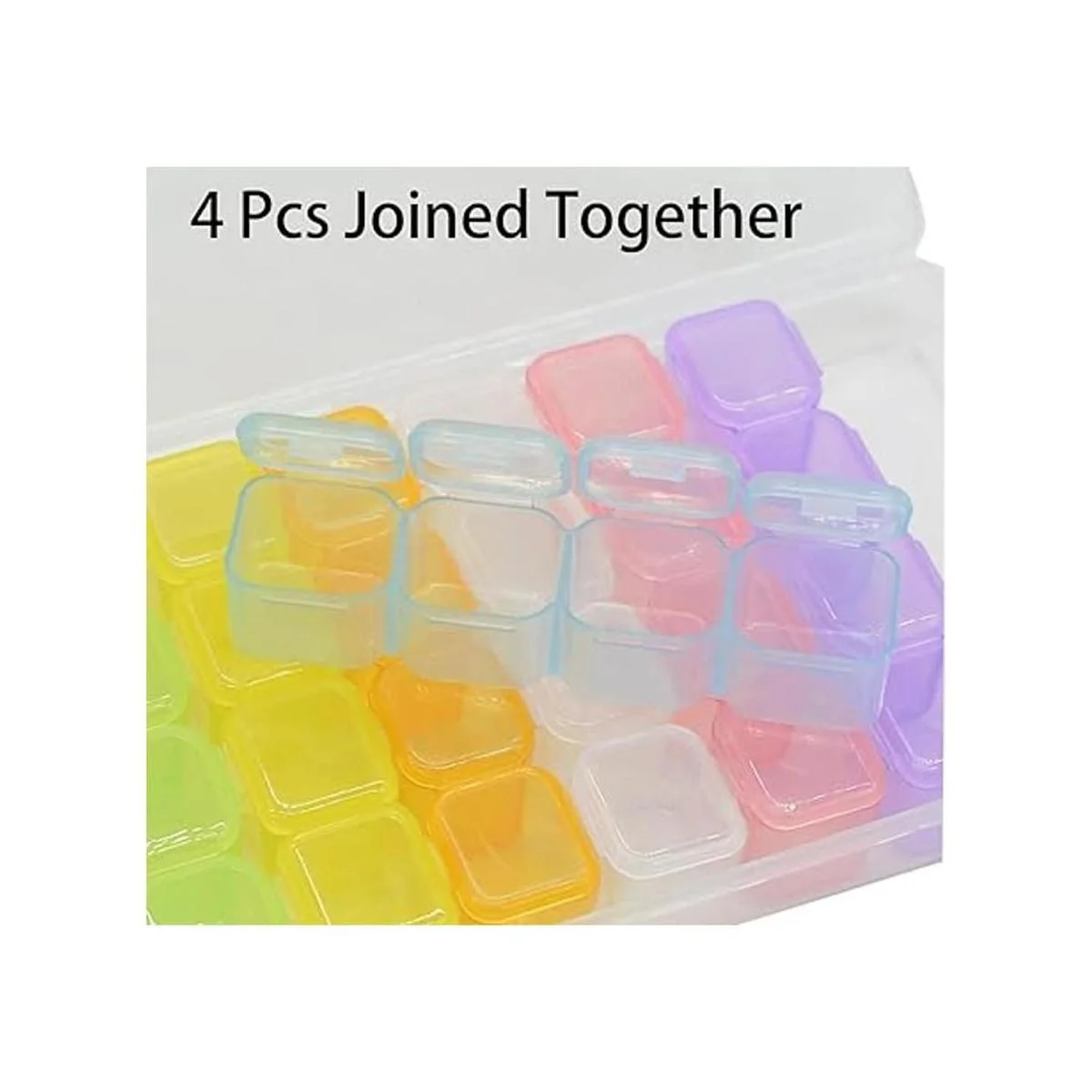 Paquete de 2 cajas de bordado de pintura de diamantes 5D de 28 cuadrículas, contenedores de almacenamiento de accesorios, caja de cuentas ajustable con 196 calcomanías de etiqueta 28 rejillas, 2 unidades coloridas