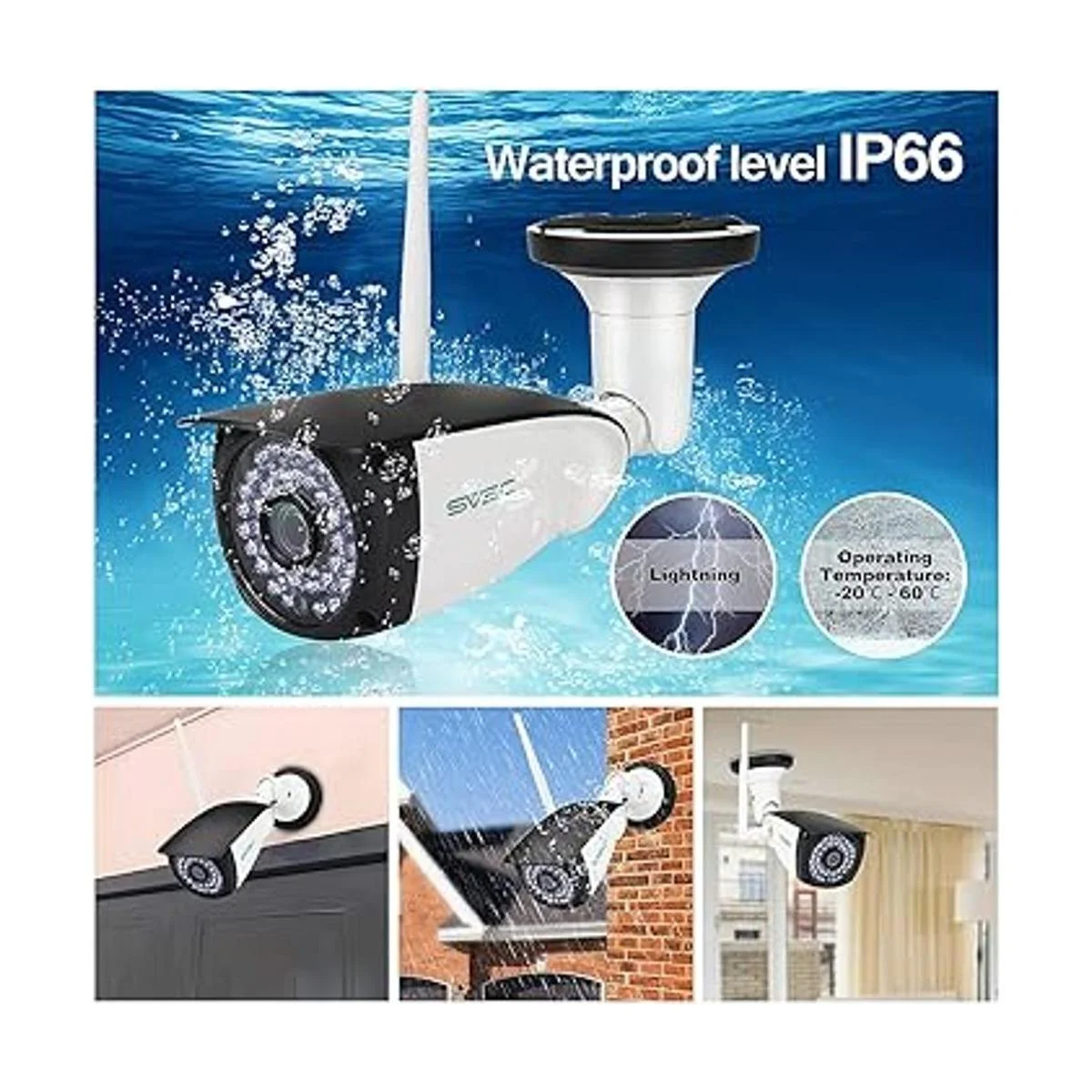 Cámara WiFi SV3C 1080P para exteriores: esta cámara IP WiFi para exteriores de 1080P es el producto clásico de SV3C, funciona con WiFi inalámbrico, pero debes conectar el adaptador de corriente para hacer que la cámara de seguridad funcione. La cámara exterior con 36 luces LED, ranura externa para tarjeta SD, carcasa de metal. La cámara de seguridad cumple con la conformidad ONVIF, audio bidireccional, detección de movimiento y alarma de sonido, grabación de tarjeta SD, visualización remota en teléfono y PC, etc. Gran regalo para el día de Acción de Gracias, Navidad, Año Nuevo y cumpleaños