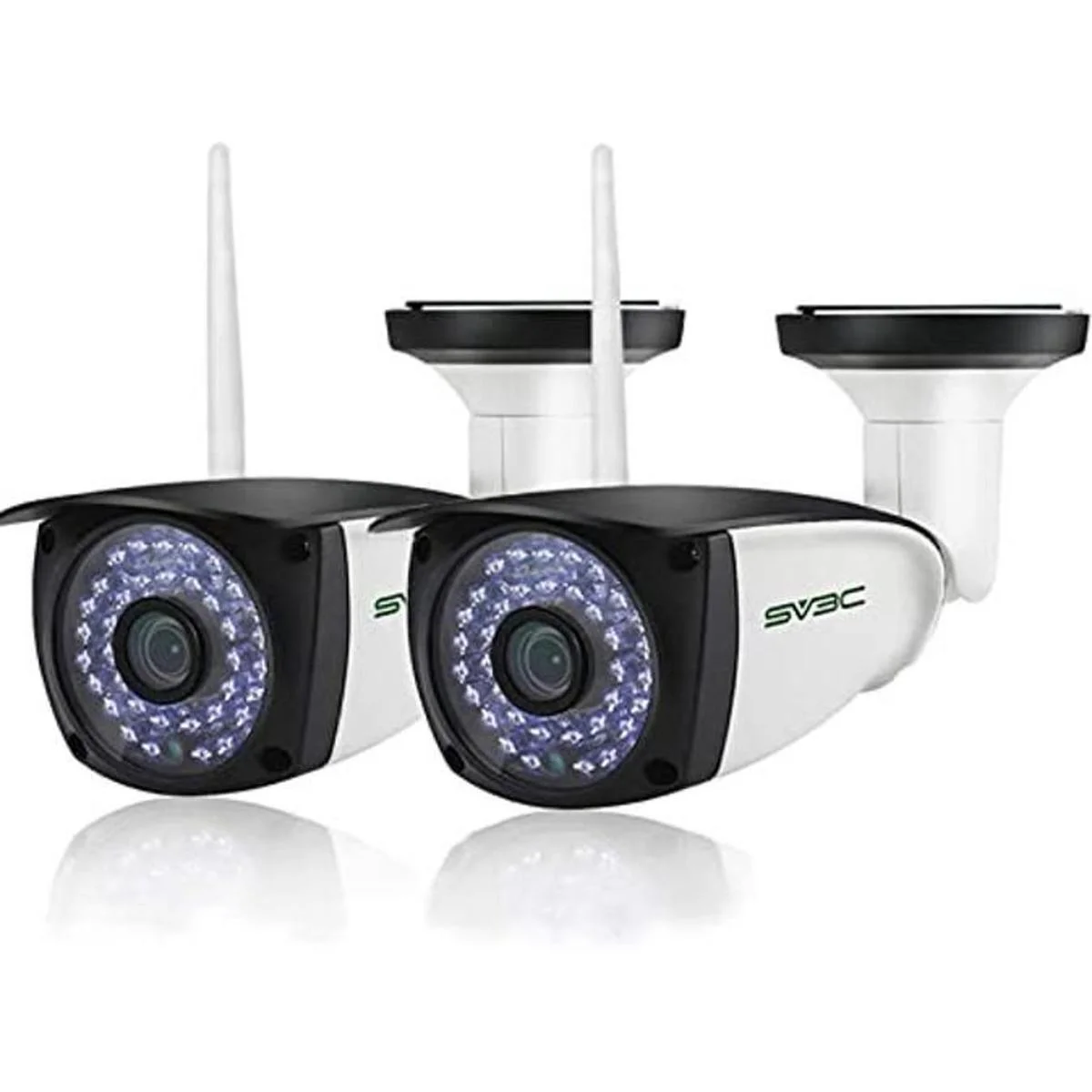 Paquete de 2 Cámaras de seguridad WiFi para exteriores, SV3C 1080P cámara IP de audio bidireccional, cámara de vigilancia exterior compatible con detección de movimiento, conformidad ONVIF, exterior impermeable IP66, registro de tarjeta SD máximo de 128 GB
