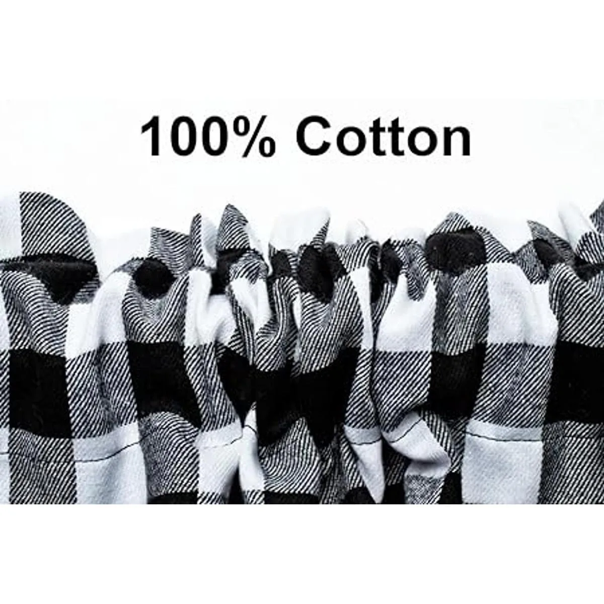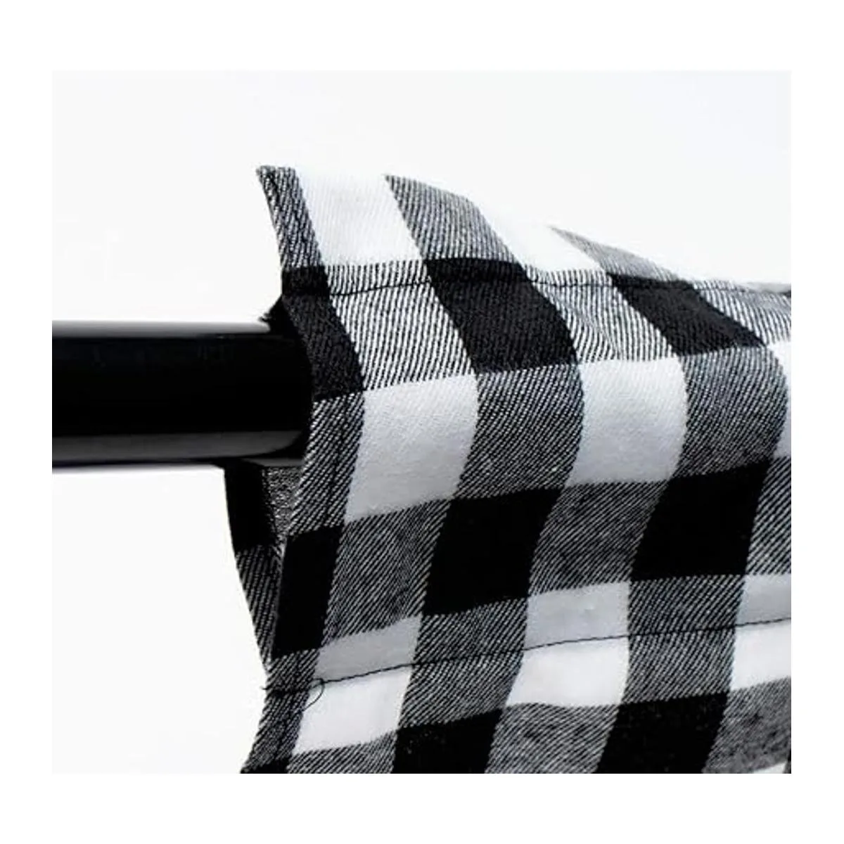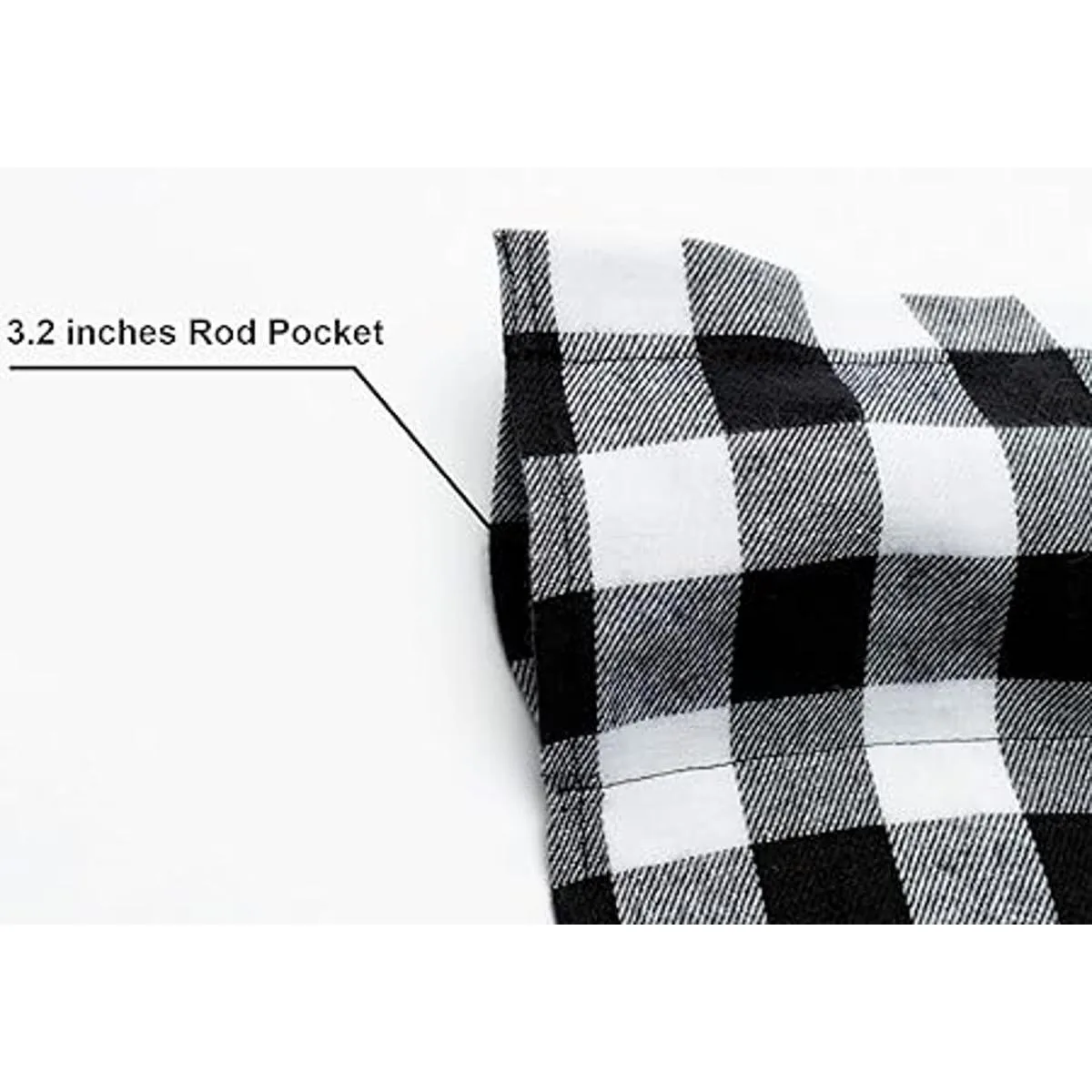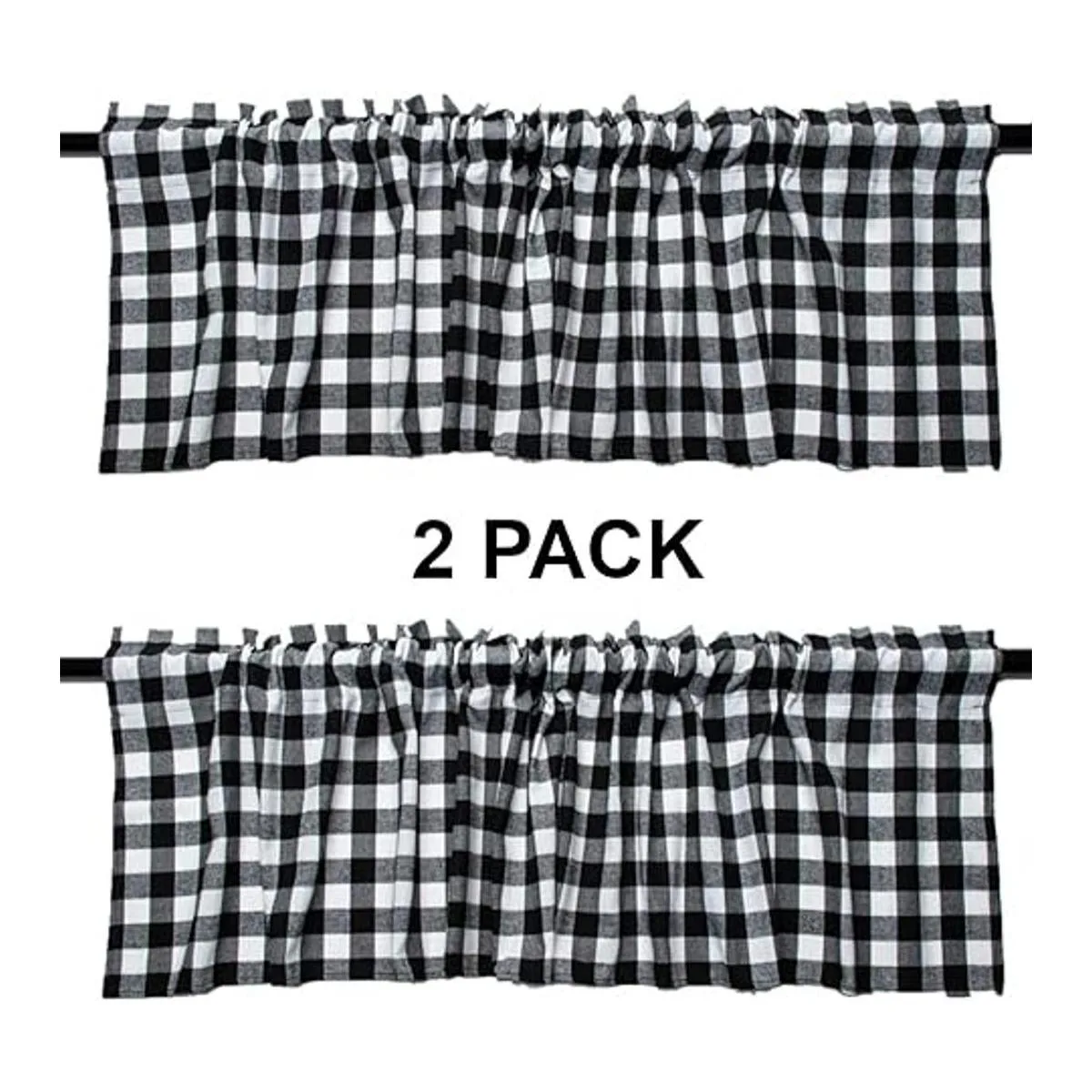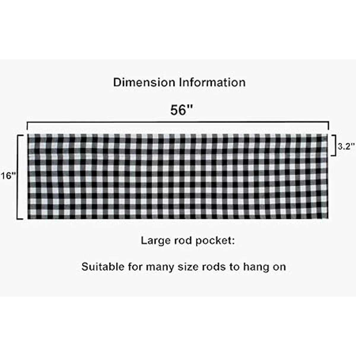Paquete de 2 cenefas de ventana a cuadros de búfalo blanco y negro, diseño de granja para decoración de ventanas, cortinas con bolsillo para barra para cocina, sala de estar, 16 x 56 pulgadas