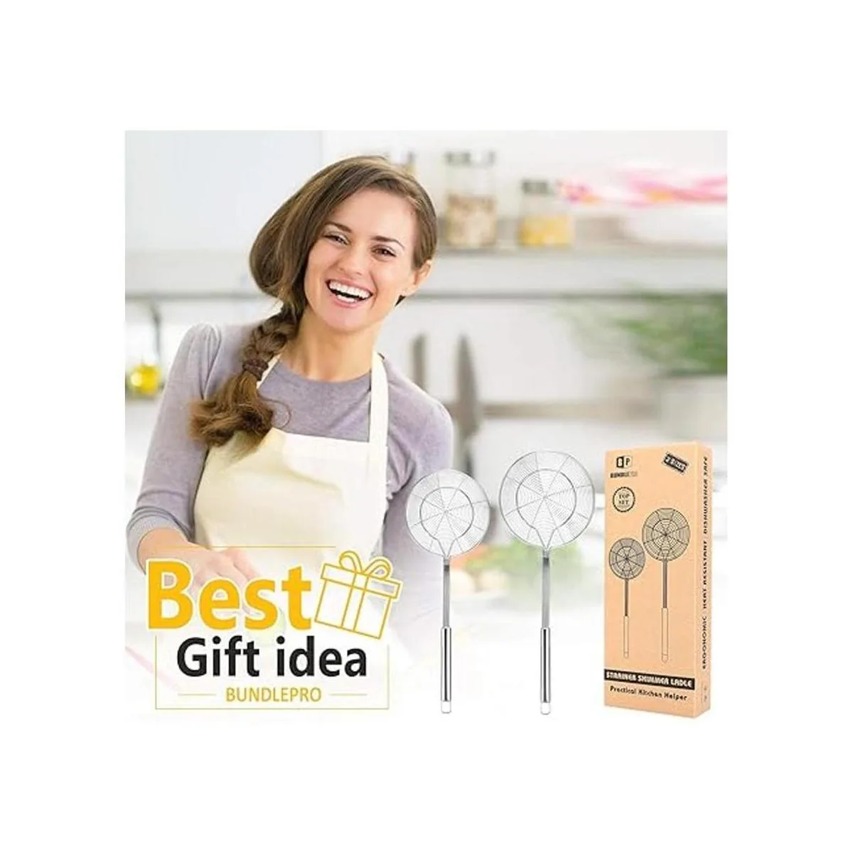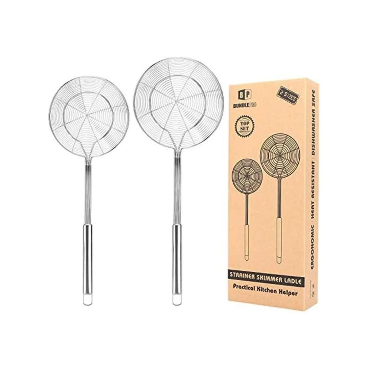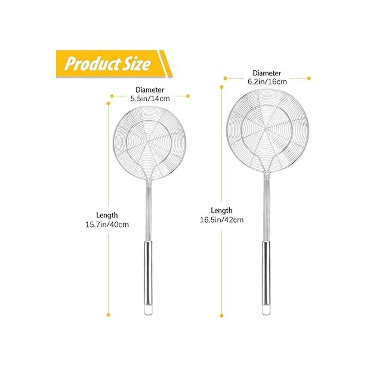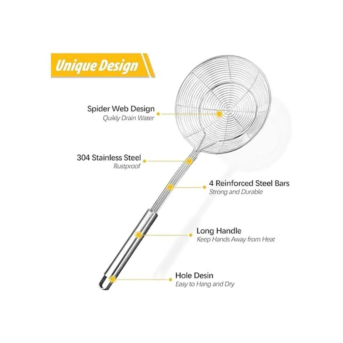 Paquete de 2 coladores de araña grandes, canasta de acero inoxidable, coladores de cucharón de cocina, cucharas de malla con mango largo, herramientas de cocina para freír, fideos hirviendo, albóndigas, pasta