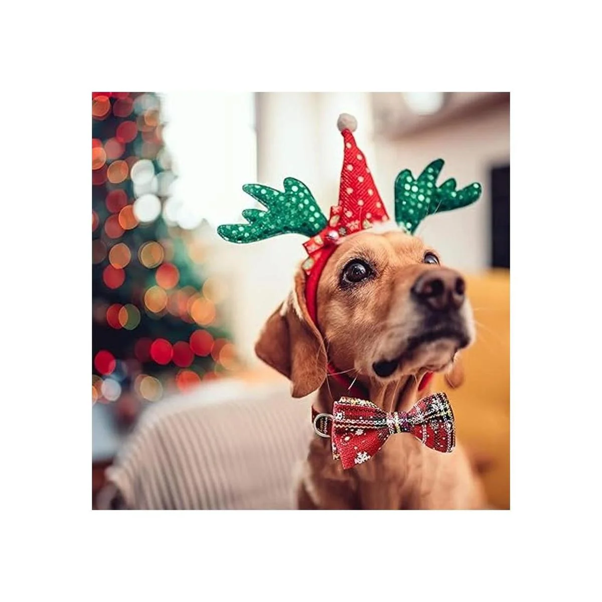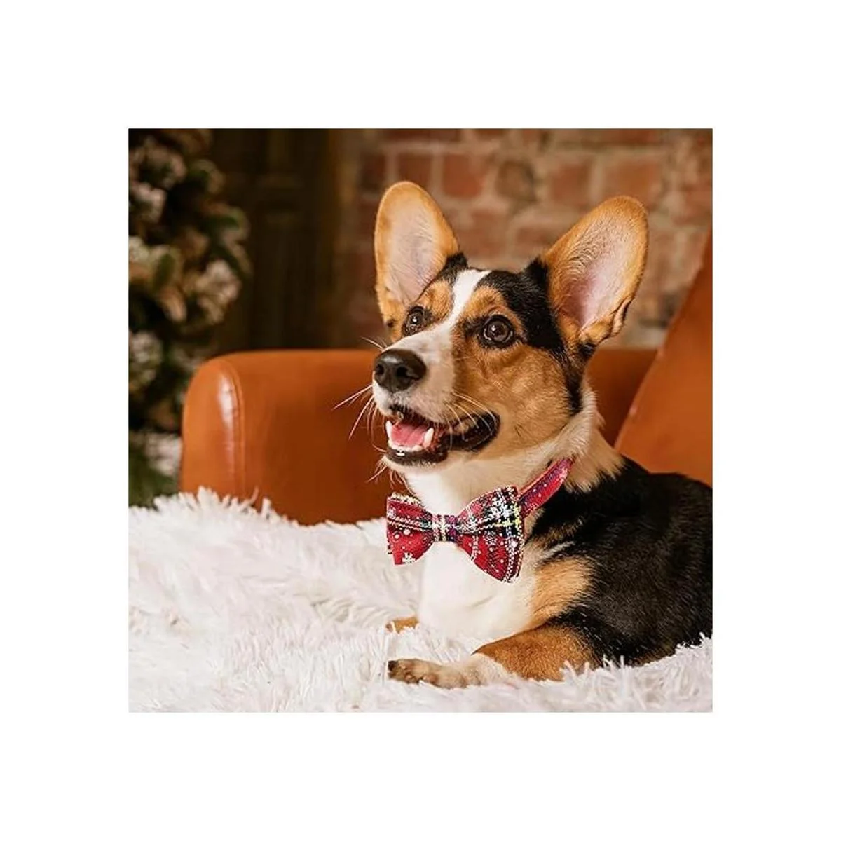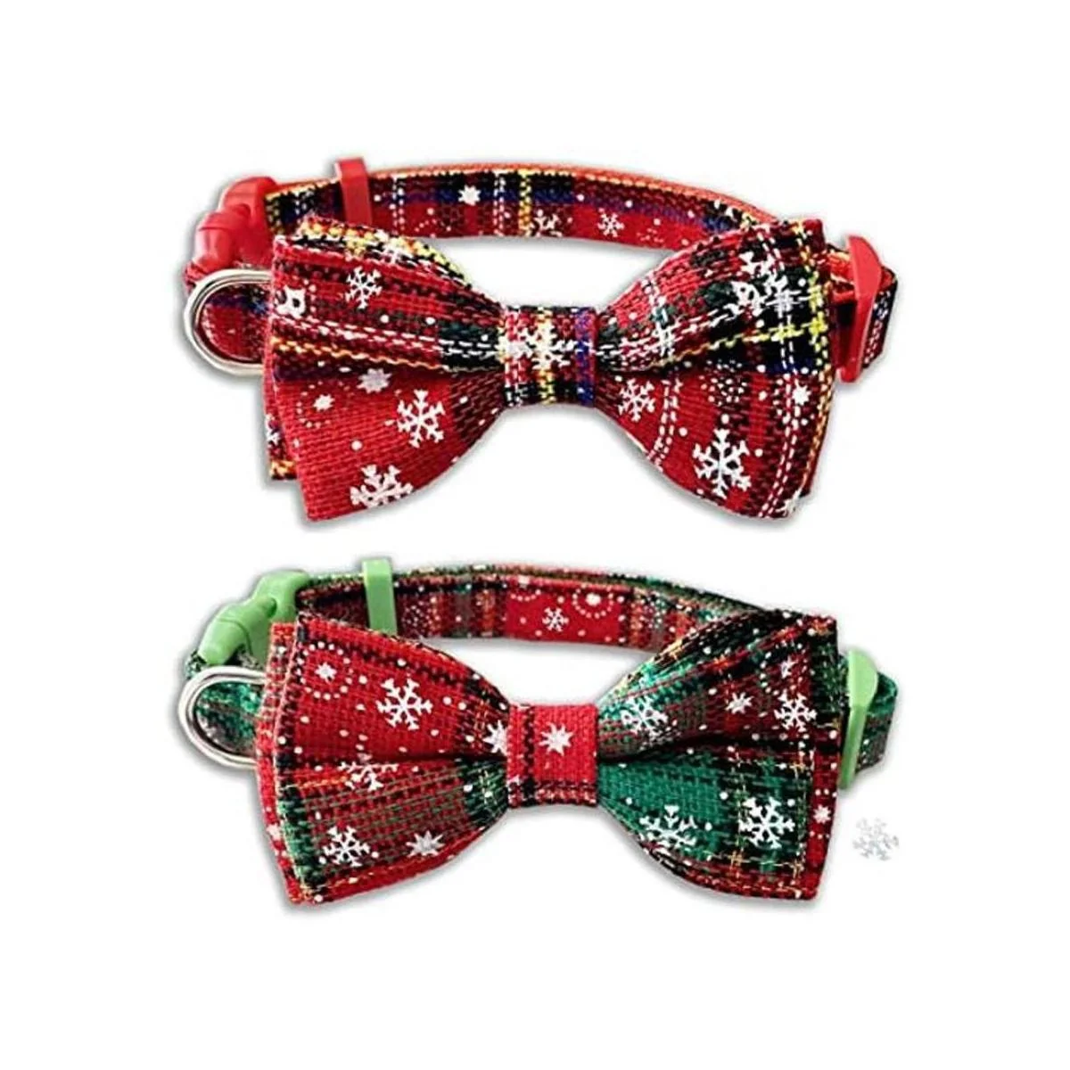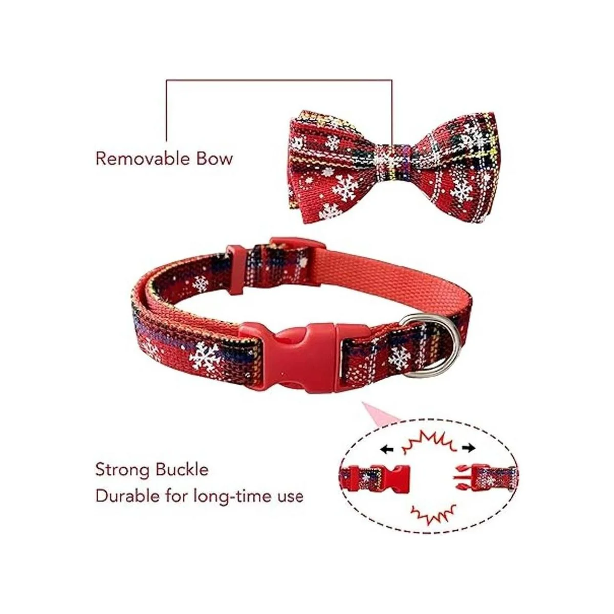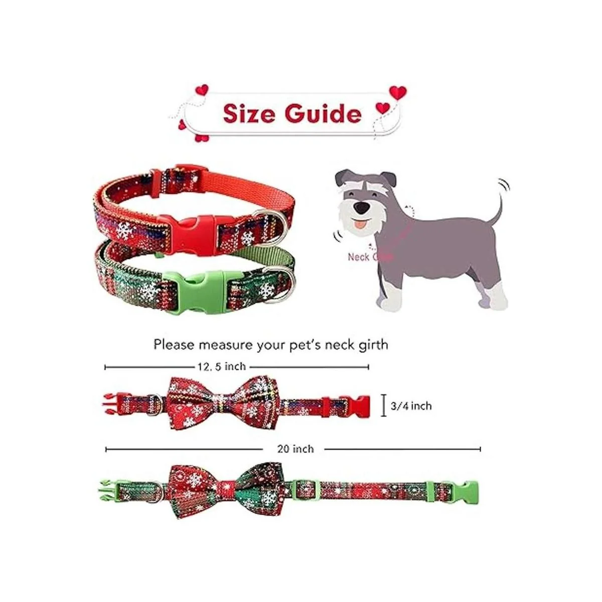 Paquete de 2 collares de Navidad para perros con corbatín, collar de copo de nieve de búfalo festivo para perros pequeños, medianos y grandes, gatos, mascotas y cachorros cuello mediano 12.520 pulgadas x 34 pulgadas de ancho