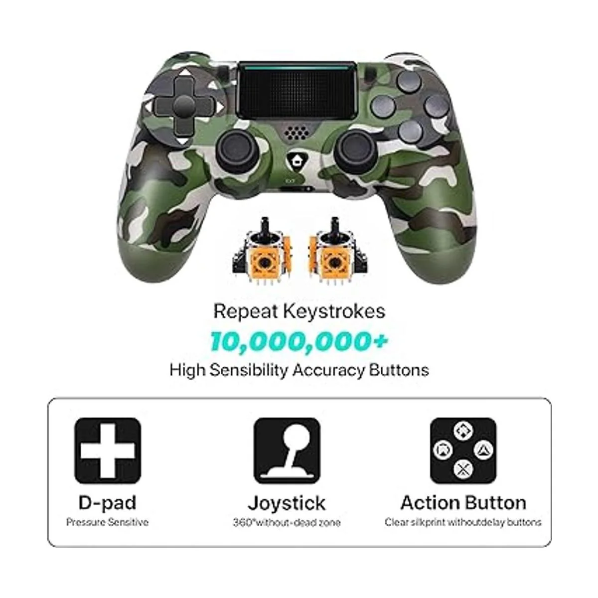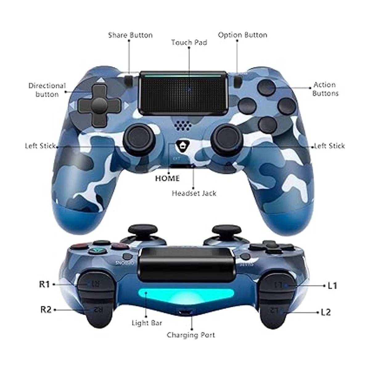 Control inalámbrico de PS4 de 2 piezas: el gran juego de controlador PS4 azul camuflaje y verde camuflaje, nuevo actualizado en 2022, la mejor experiencia de juego.