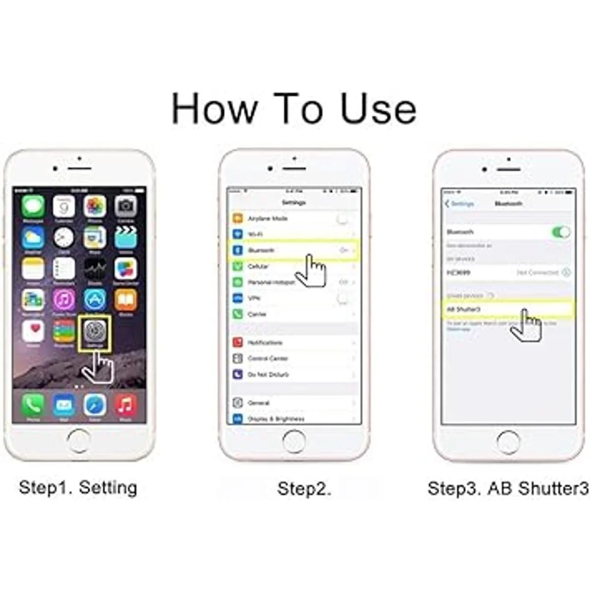 Notas: 1. El mando a distancia cambiará al modo de suspensión para ahorrar energía si no funciona durante 3 minutos, haz clic en el botón de la cámara y espera dos segundos para despertar. 2. Si el control remoto solo ajusta el volumen del teléfono, cambia la configuración del teléfono móvil y cambia la tecla del obturador a la tecla de volumen.
