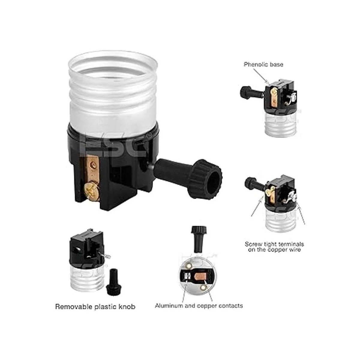 Base mediana E26 solo interior, soporte de lámpara incandescente, perilla giratoria extraíble, 2 circuitos, para lámparas de 3 vías de 2 filamentos