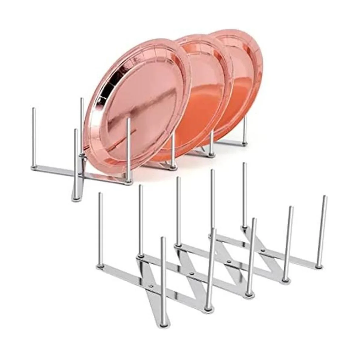 Múltiples funciones: el estante de almacenamiento retráctil de acero inoxidable no solo es adecuado para organizar platos, tazas, tapas de ollas y cuencos. pero también se puede utilizar como estante de vapor, incluso se puede utilizar como estante para colgar utensilios.